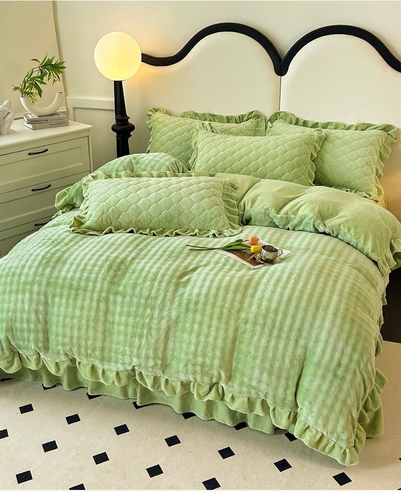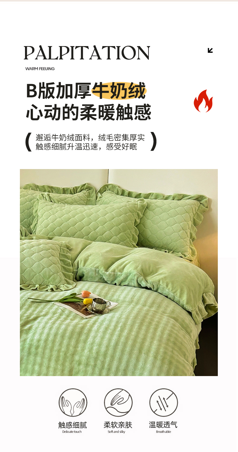 屹成家纺 2024新款牛奶绒泡泡款床盖四件套 泡泡款-嫩绿