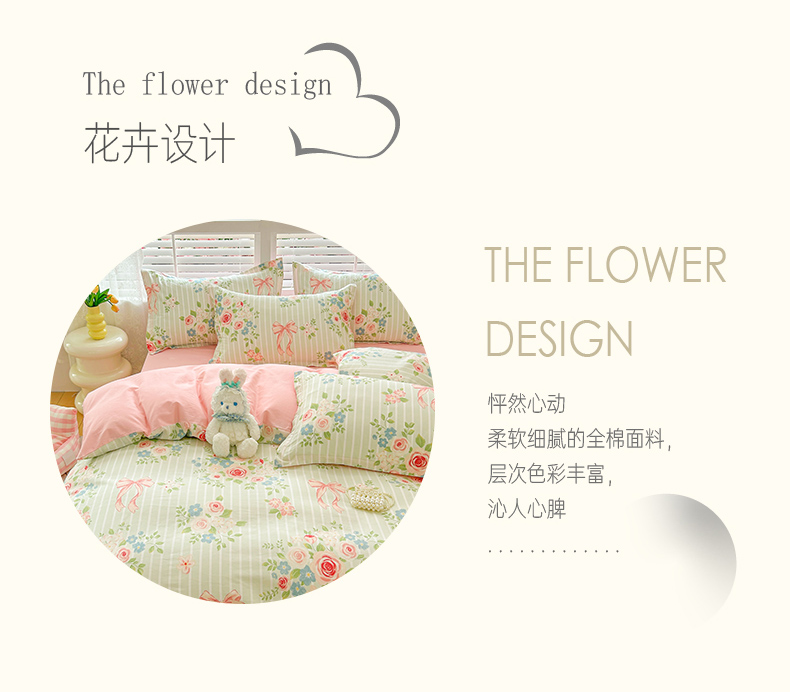 (总)红馆 2023新款12868全棉印花四件套,春浅,花期,简花,里约,漫步花丛,梦想花园,紫韵,字母兔