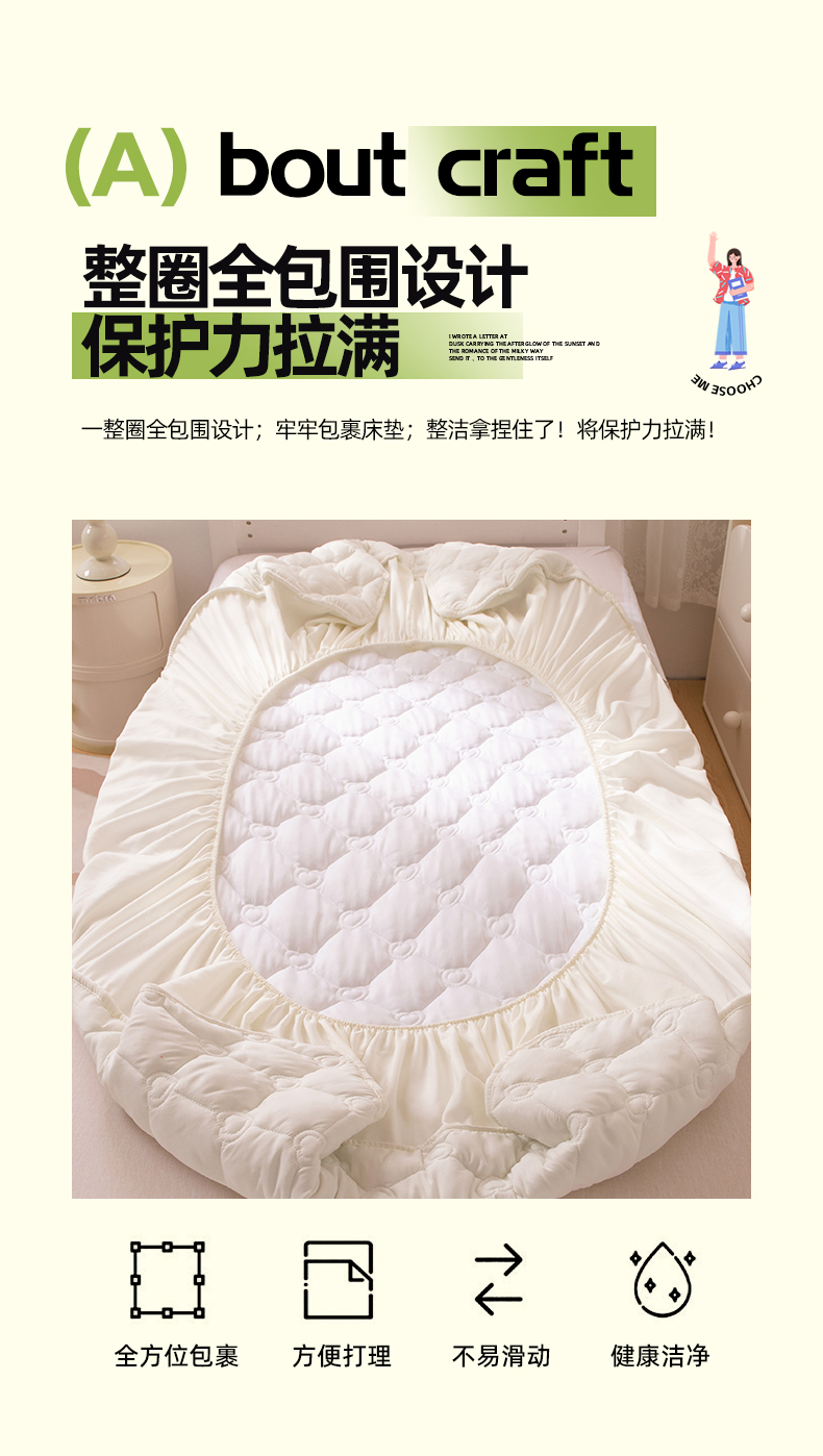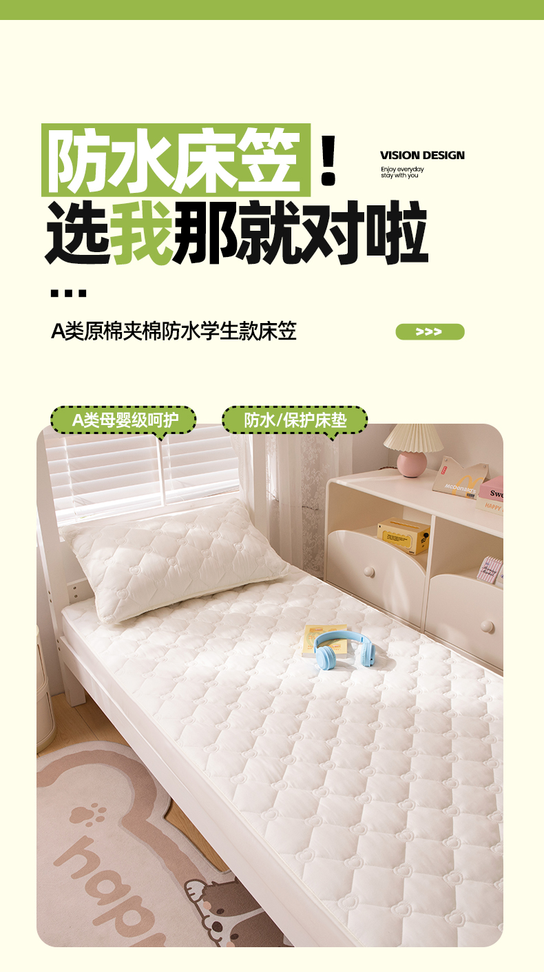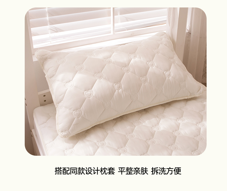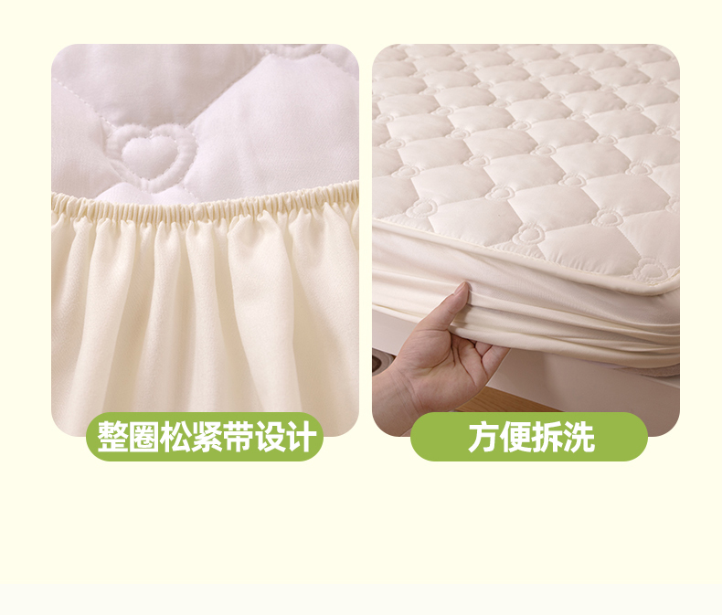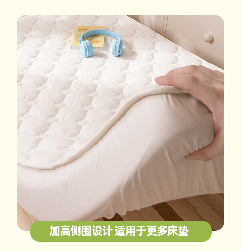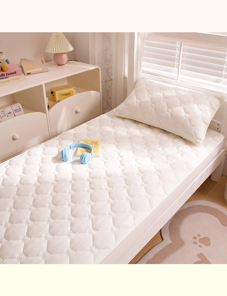商品名称:暖季家纺 2025新款心芙系列夹棉防水床笠学生款 心芙-米白