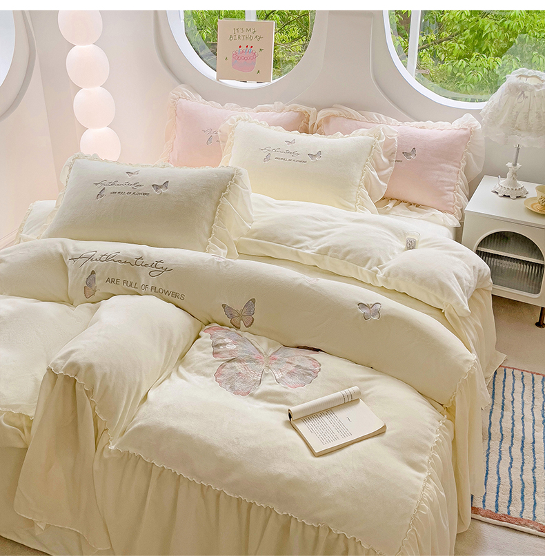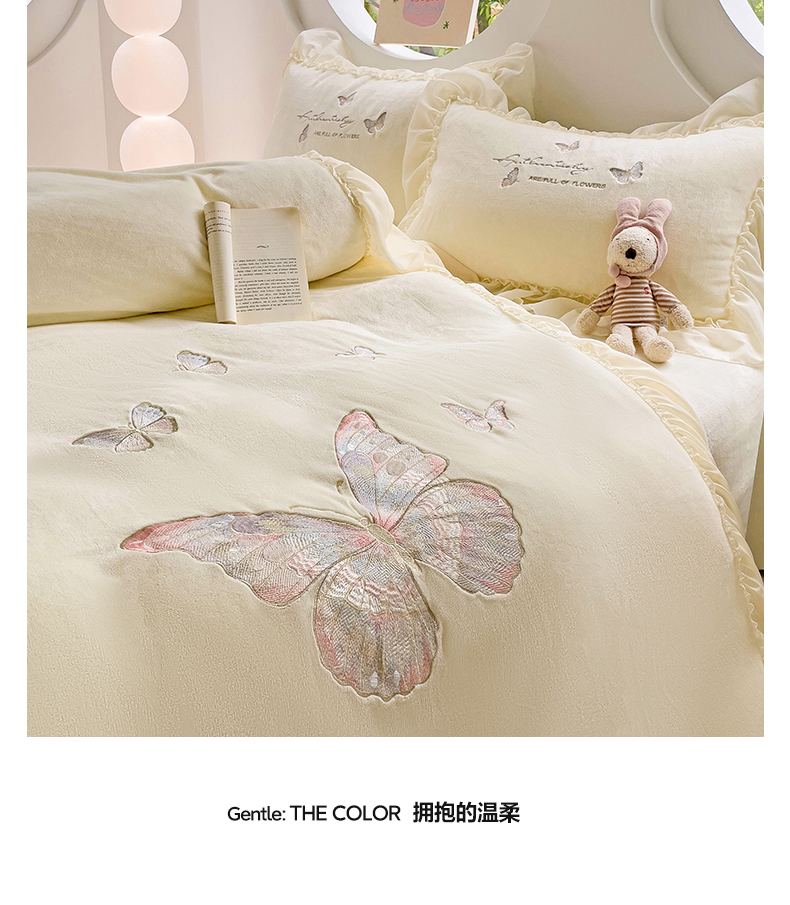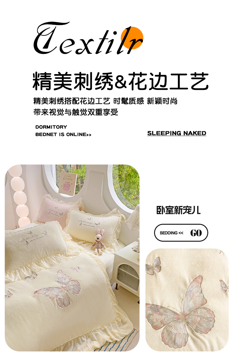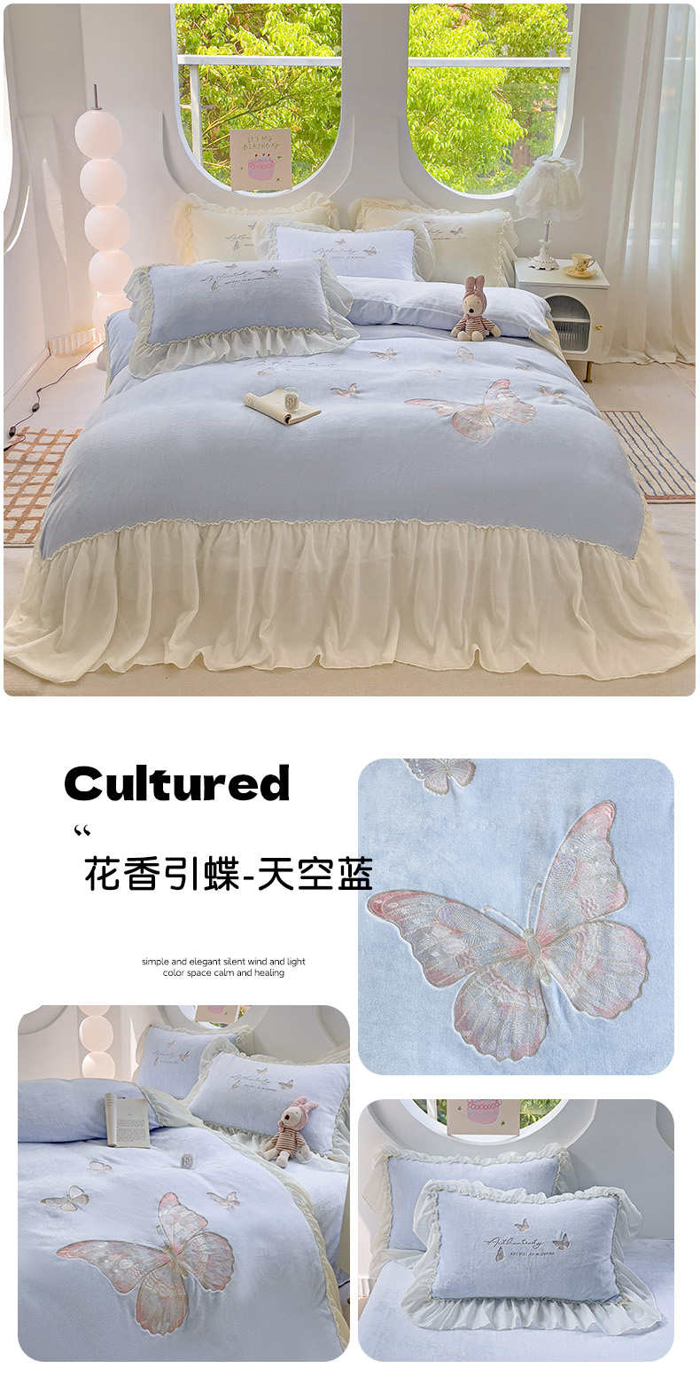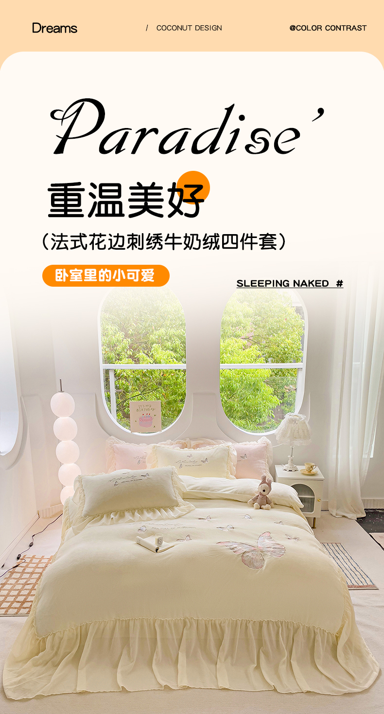 娜娜 2024新款法式花边牛奶绒刺绣四件套-花蕊-花香引蝶系列 花香引蝶-奶昔白