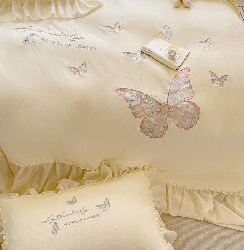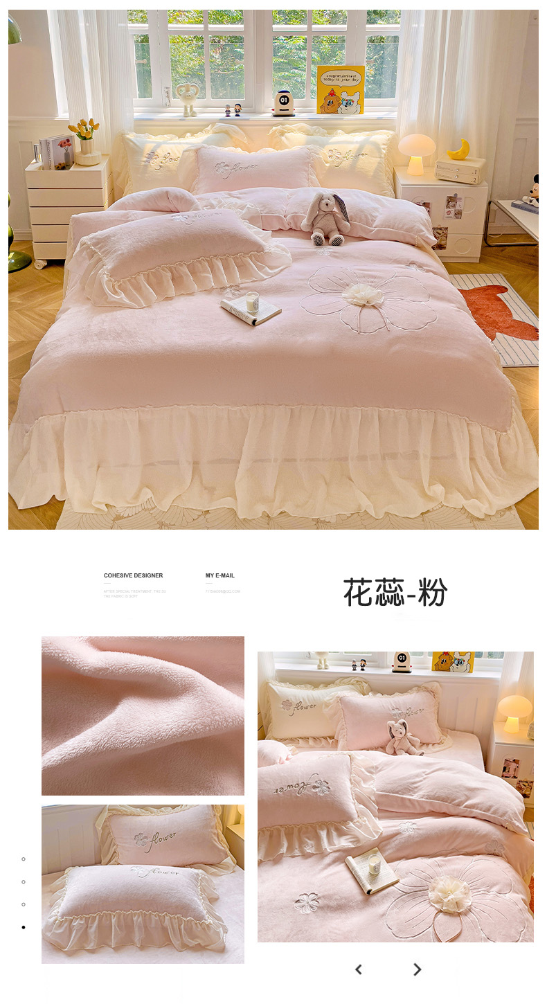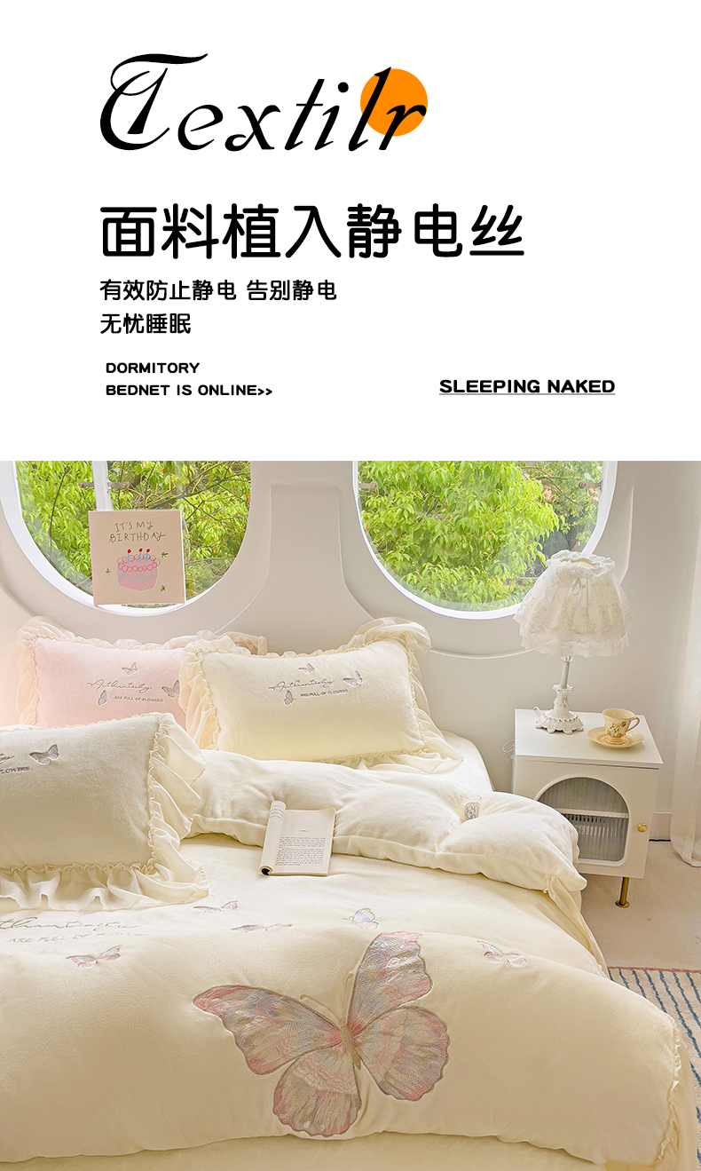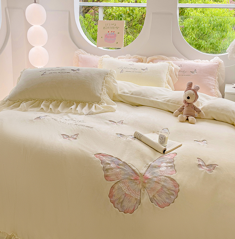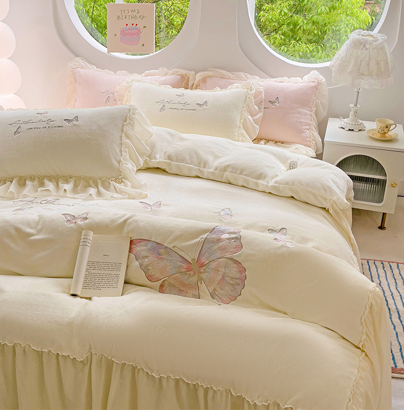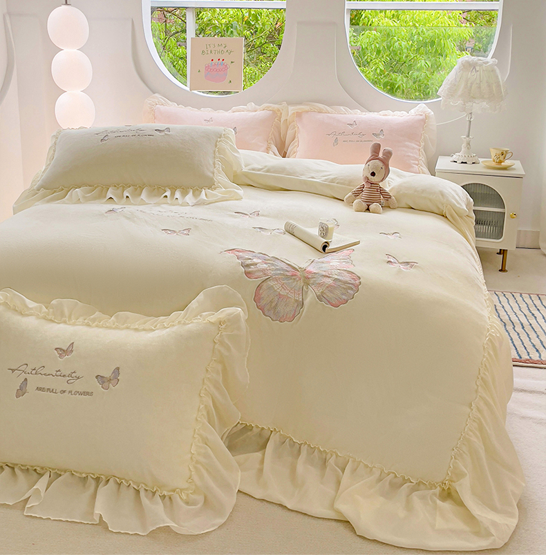 娜娜 2024新款法式花边牛奶绒刺绣四件套-花蕊-花香引蝶系列 花香引蝶-奶昔白