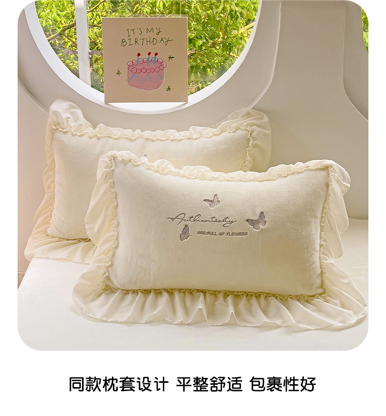 商品名称:娜娜 2024新款法式花边牛奶绒刺绣四件套-花蕊-花香引蝶系列 花香引蝶-奶昔白
