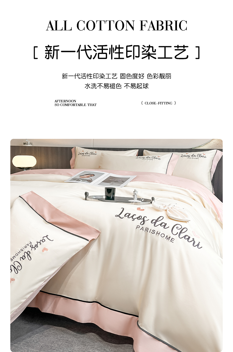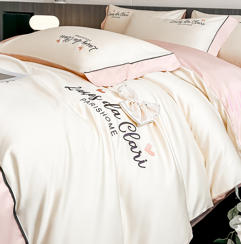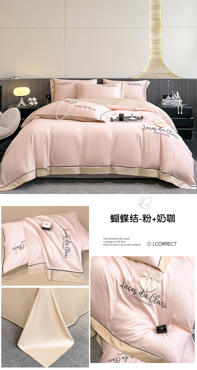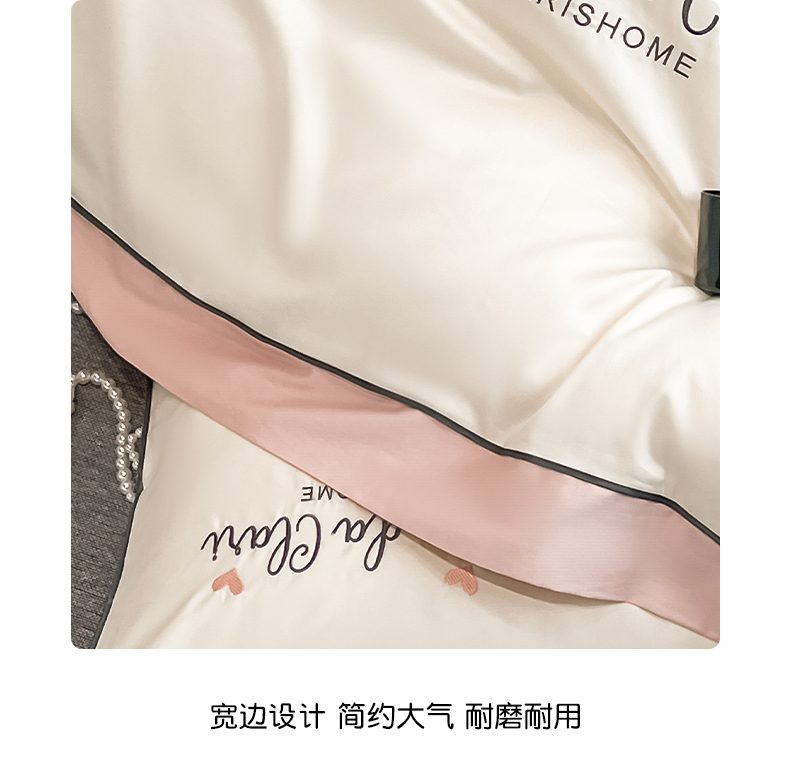 娜娜 2024新款全棉时尚刺绣AB版双拼宽边绣花四件套--蝴蝶结系列 蝴蝶結-奶昔白+粉