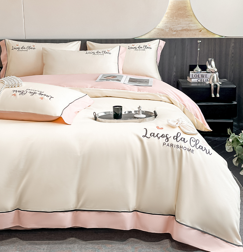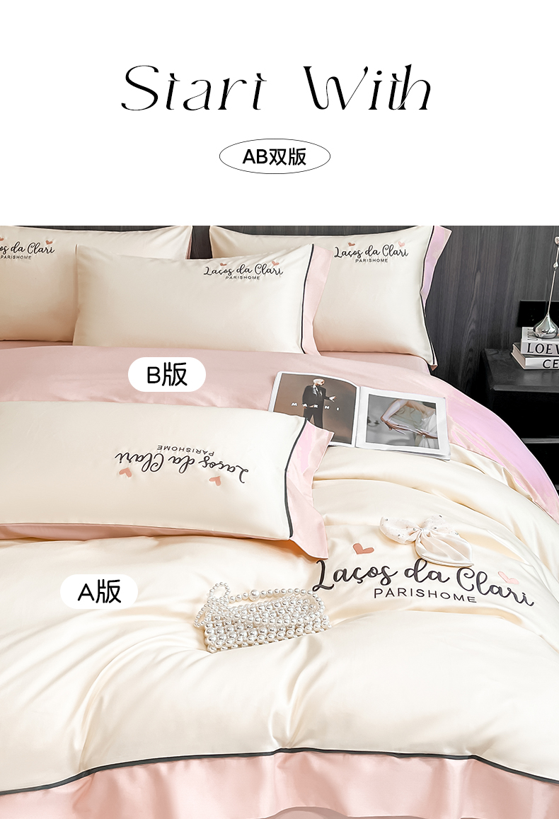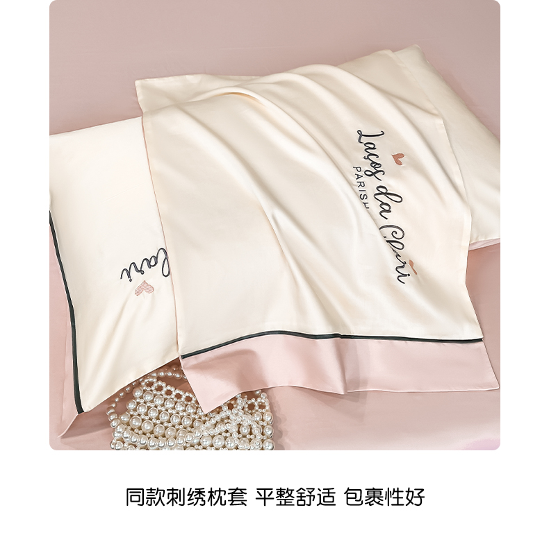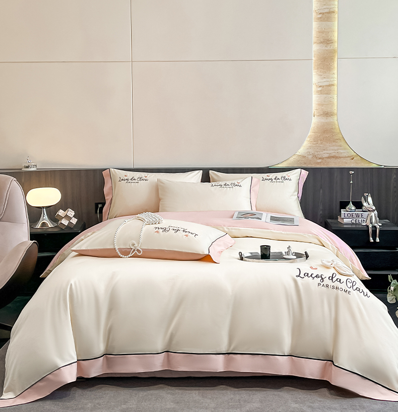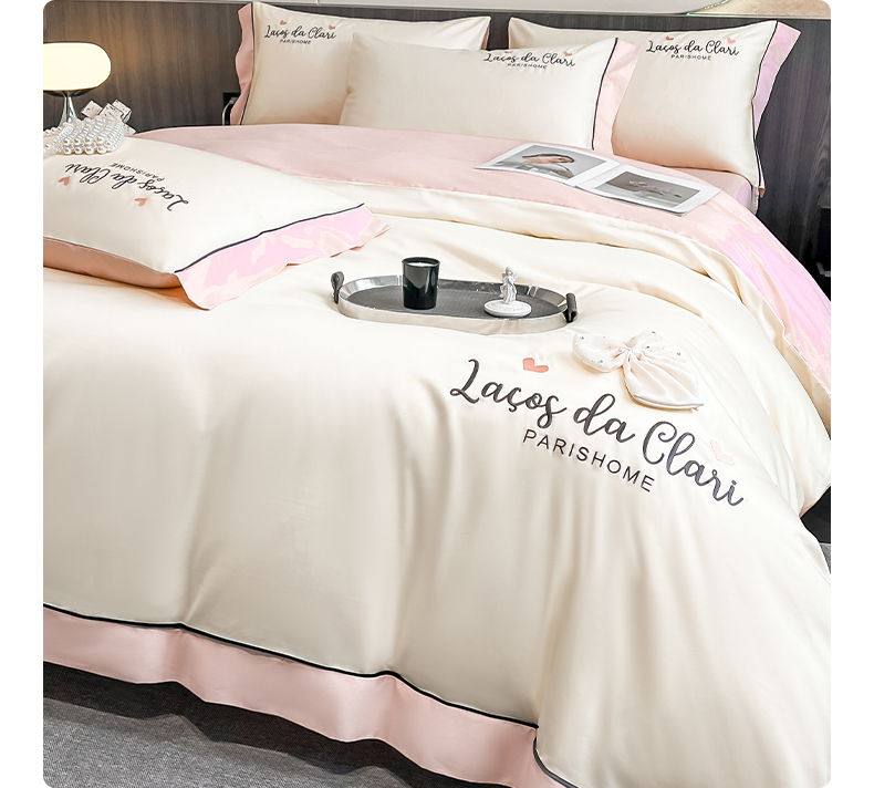 娜娜 2024新款全棉时尚刺绣AB版双拼宽边绣花四件套--蝴蝶结系列 蝴蝶結-奶昔白+粉