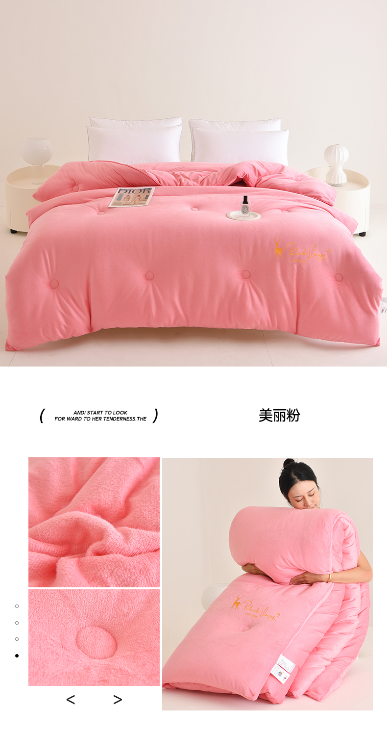 商品名称:蓝冰家纺 2024新款水晶绒羽丝棉刺绣冬被 高雅豆沙粉