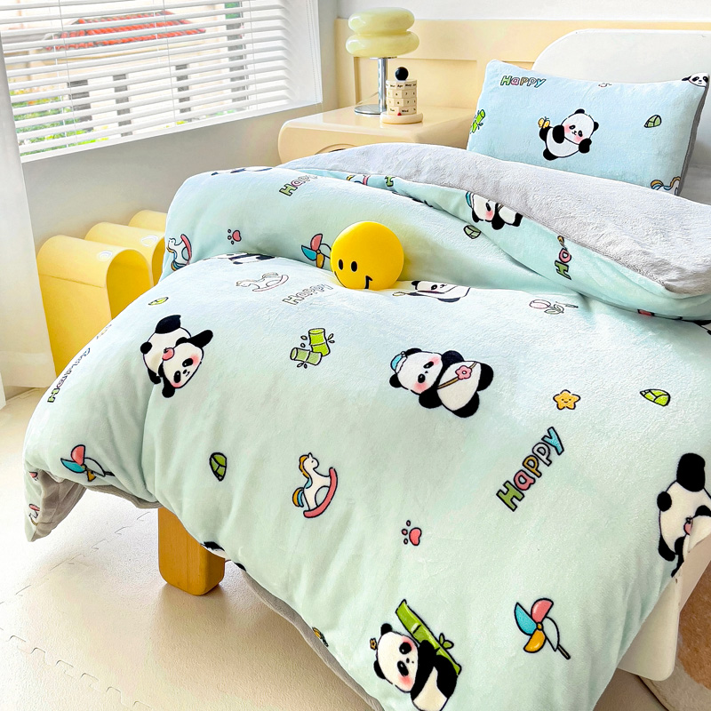 • 91家纺网 家纺一手货源 找家纺 乐秀家纺 2025新款A类牛奶绒幼儿园被子可拆卸被套+被芯 运动熊猫