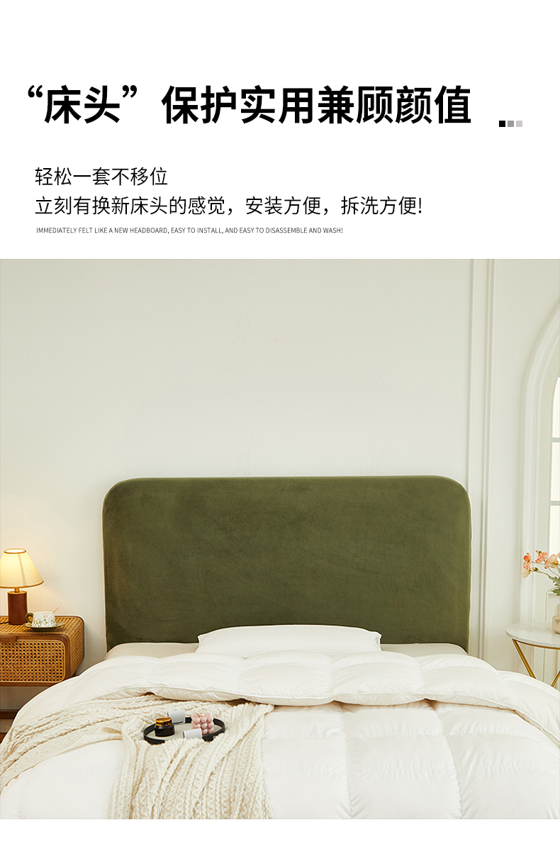商品名称:逐日沙发套 2024新款超柔云感绒系列-床头罩 超柔云感绒-复古绿