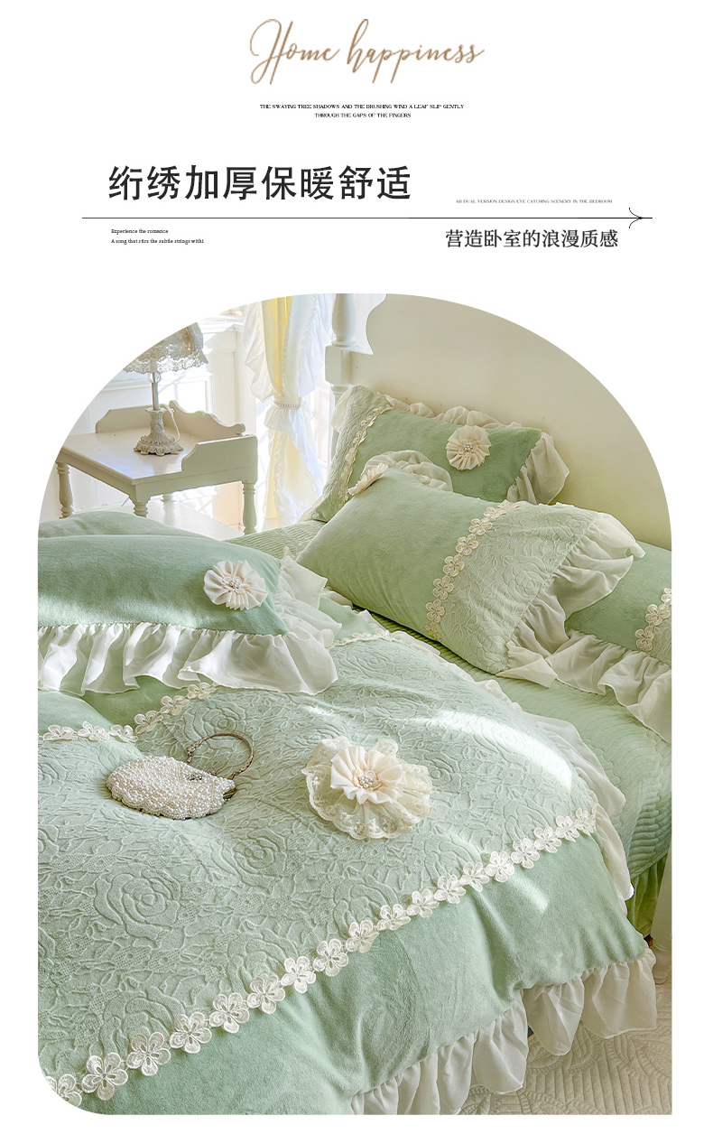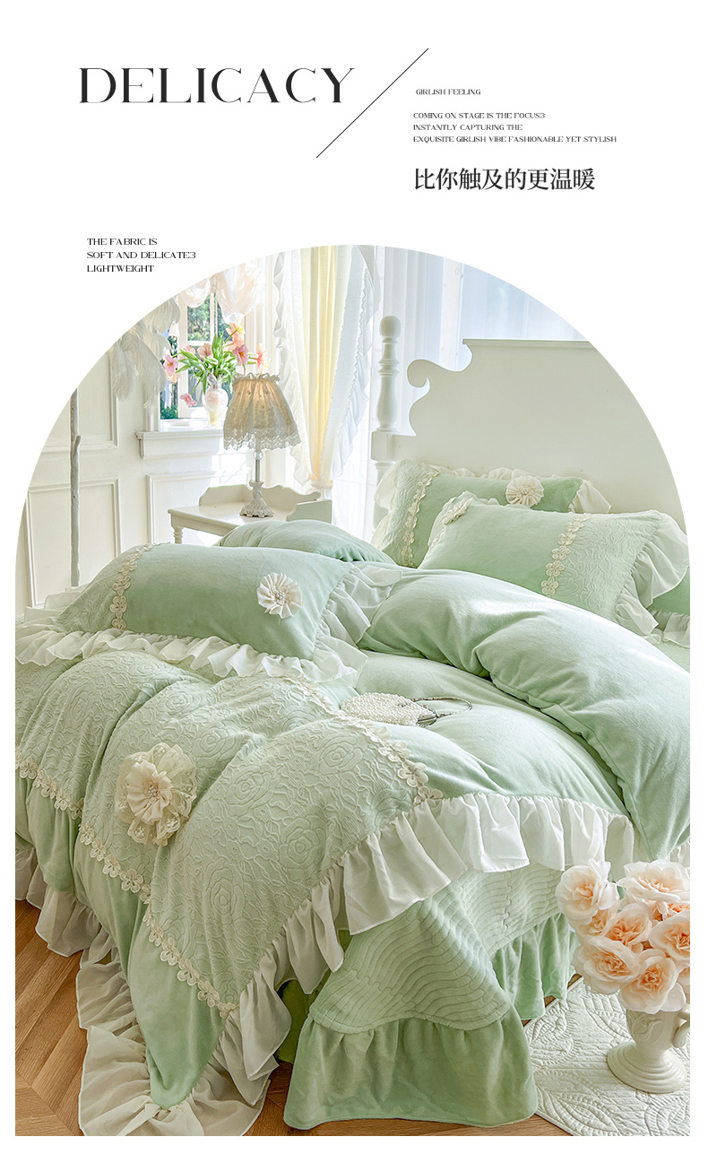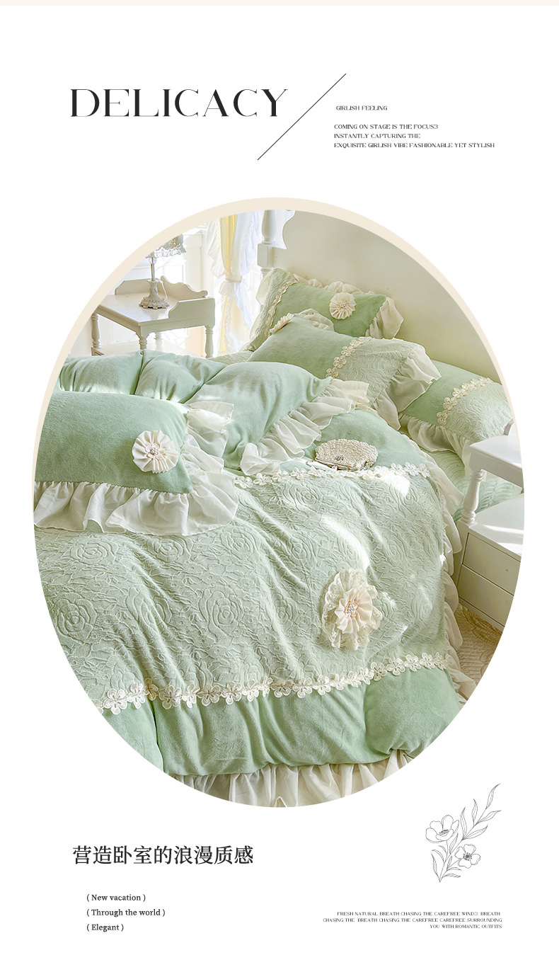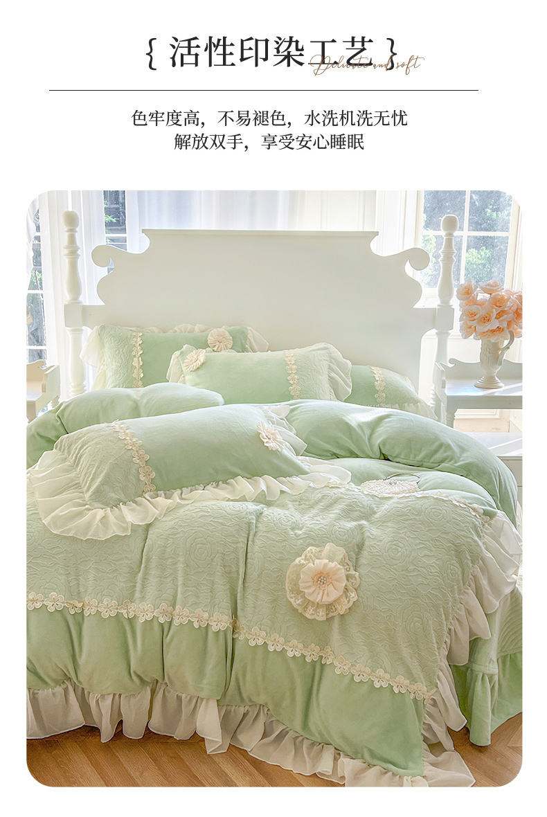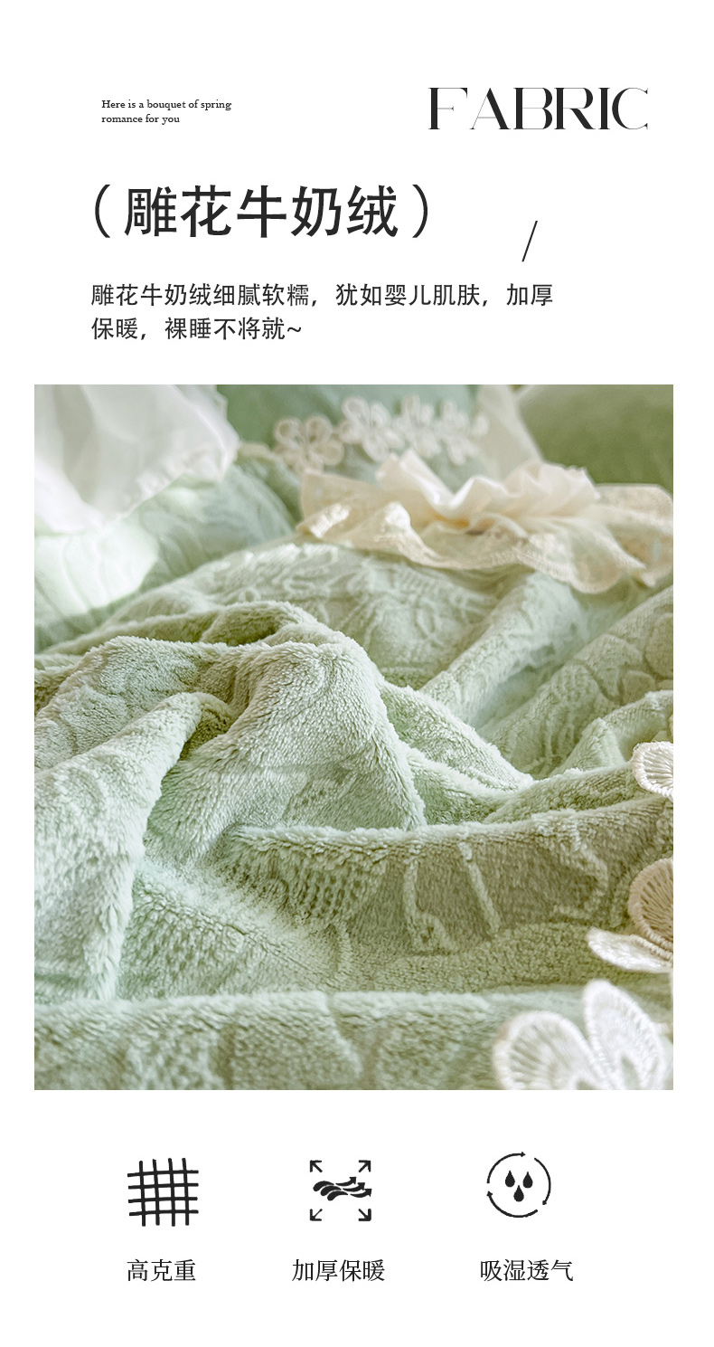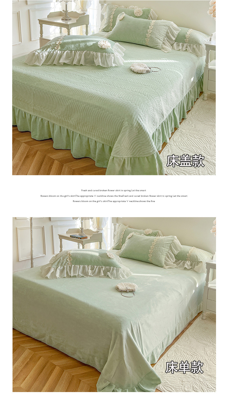 乐朵家居 2024新款 梦妮莎 牛奶绒床单款床盖款四件套 绿(控价 单269 夹棉299)