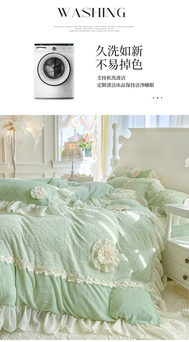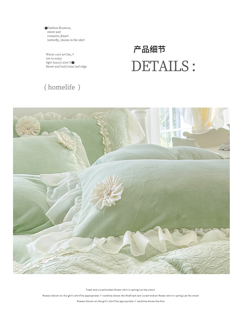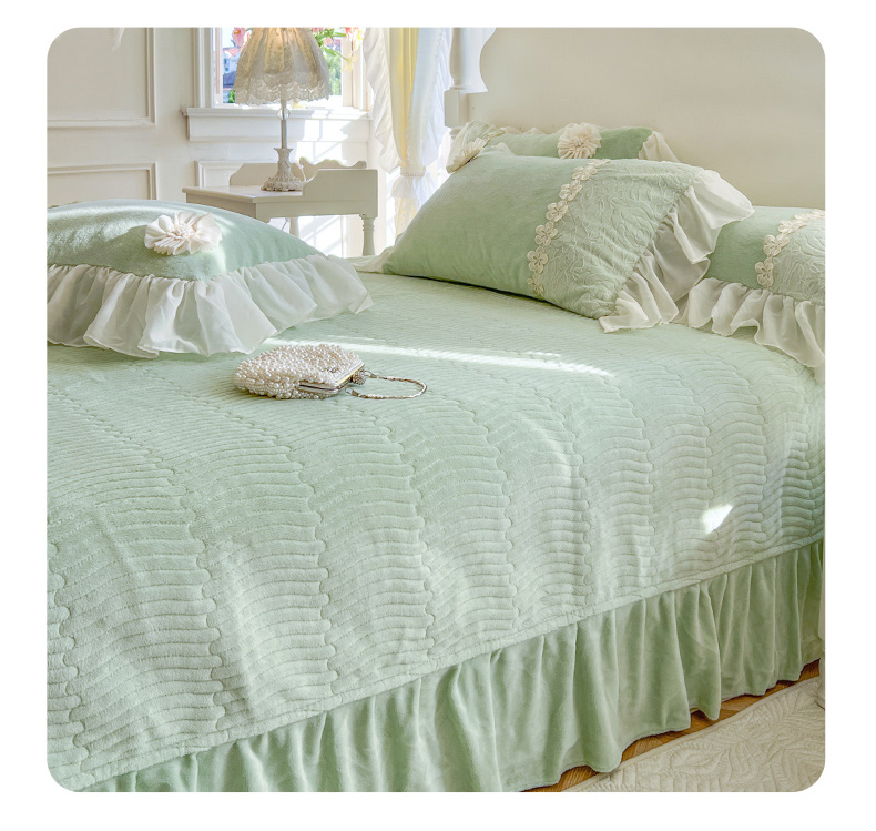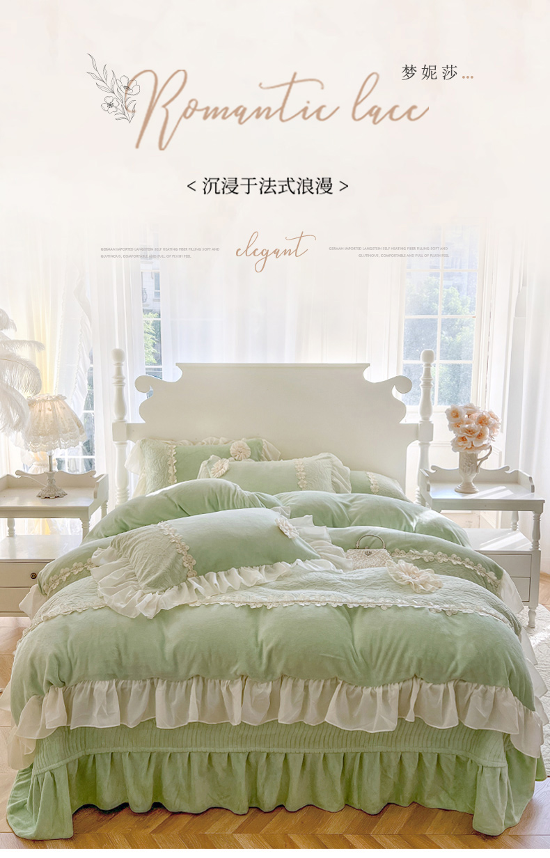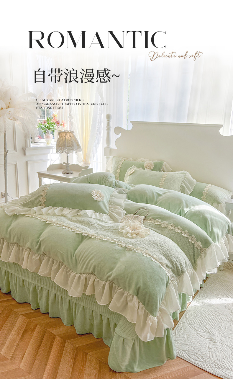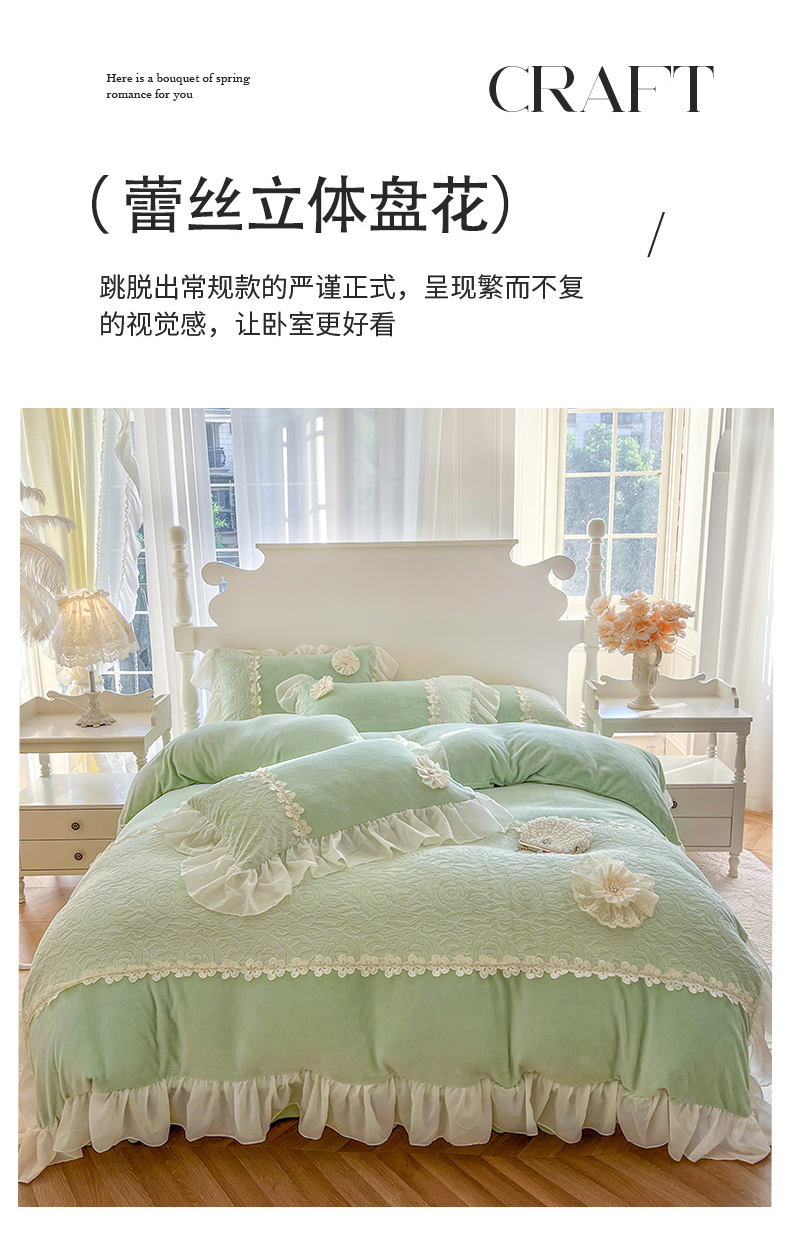 乐朵家居 2024新款 梦妮莎 牛奶绒床单款床盖款四件套 绿(控价 单269 夹棉299)