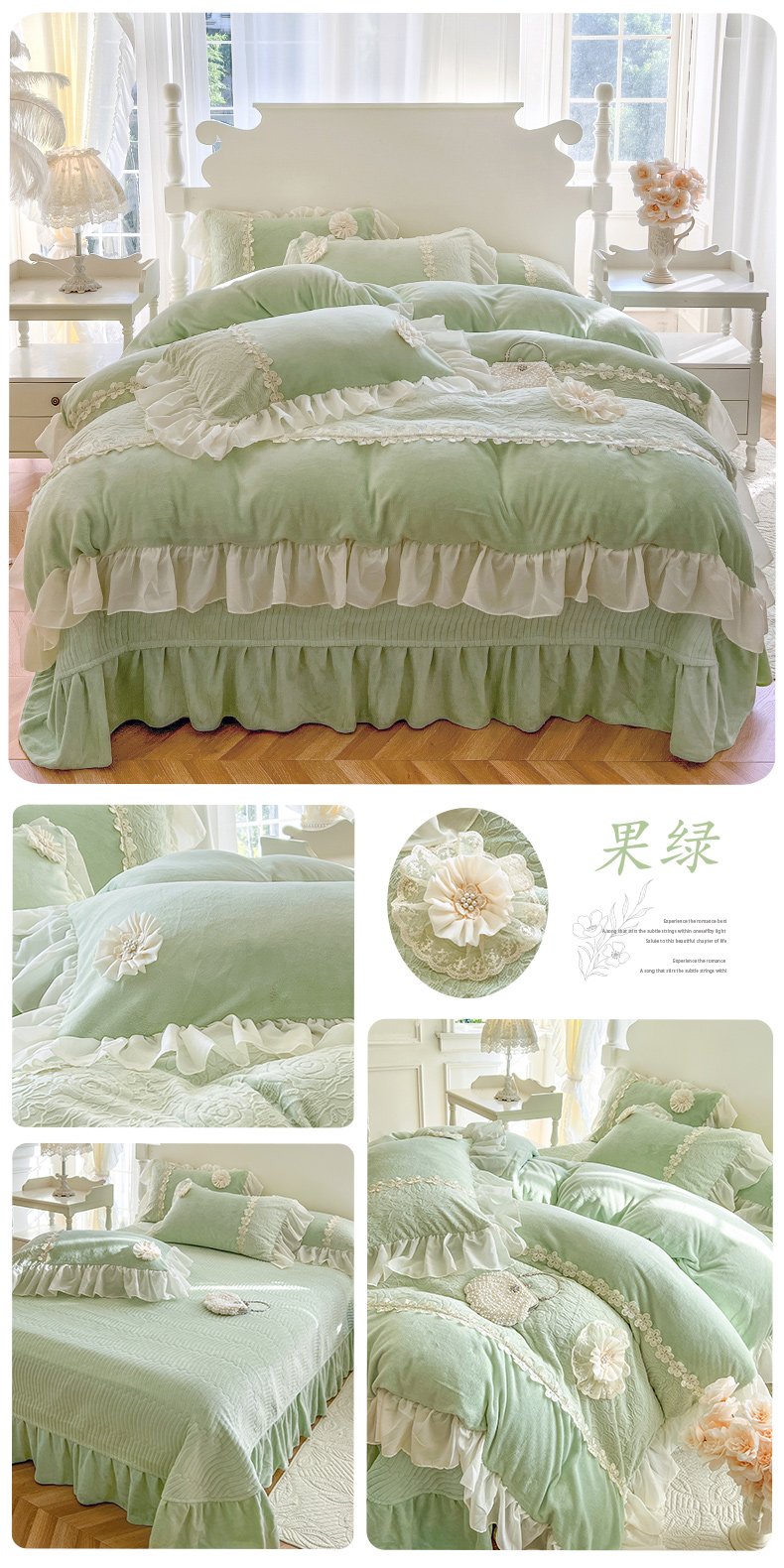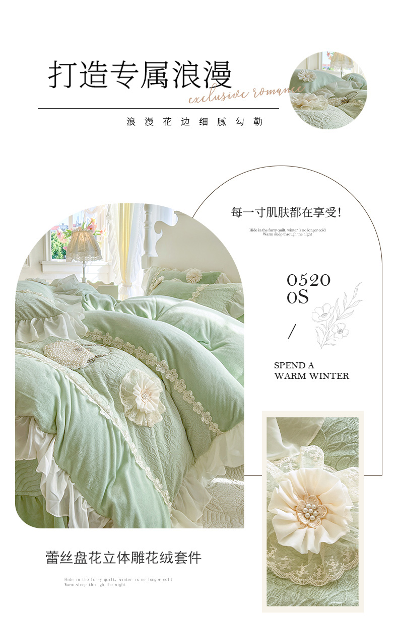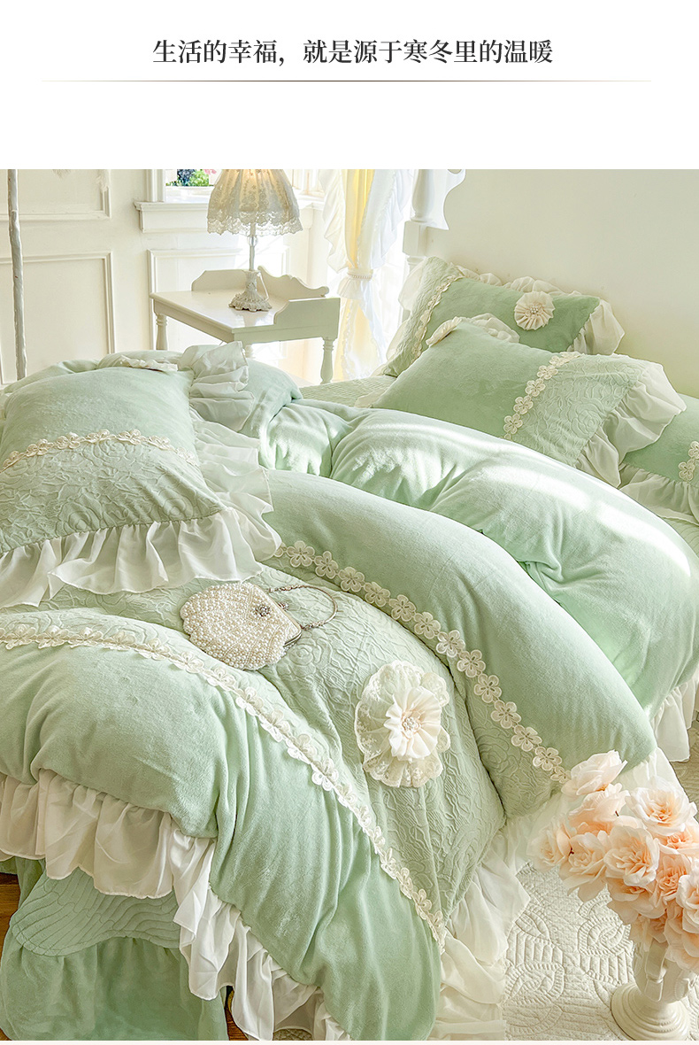 商品名称:乐朵家居 2024新款 梦妮莎 牛奶绒床单款床盖款四件套 绿(控价 单269 夹棉299)