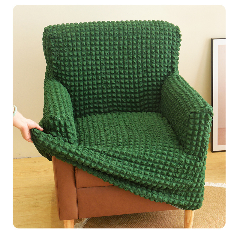 启博家纺 2024新款泡泡纱单人沙发椅罩 橄榄绿