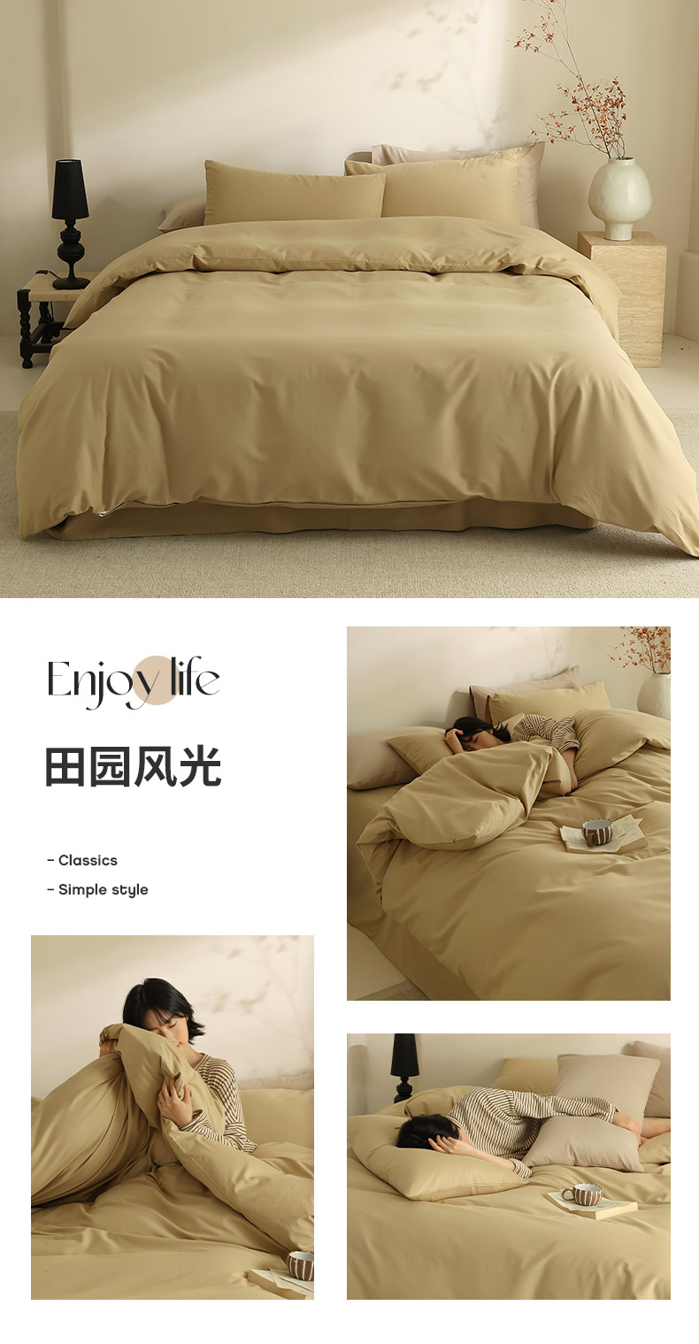 (总)轩和家居 2025新款全棉高支旧感砂洗长绒棉四件套,薄樱粉,淡黄色,暮烟灰,墨染灰,落栗棕,霁兰色,豆沙色,浅云白,青绿色,秋麦色,松石绿,天空蓝,雾海蓝,细雨灰