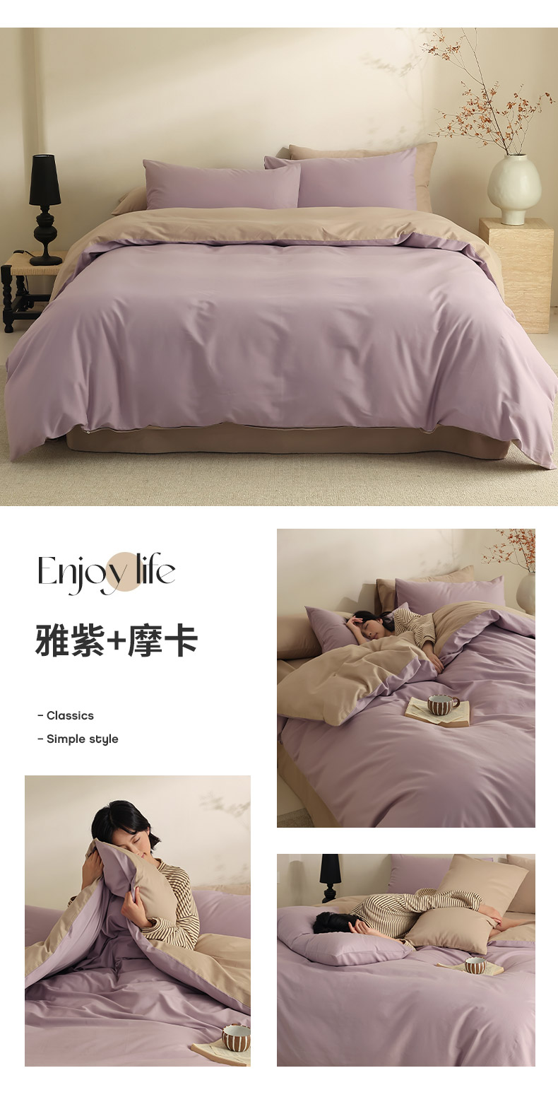 商品名称:轩和家居 2024新款50S长绒棉磨毛单被套 雅紫+摩卡