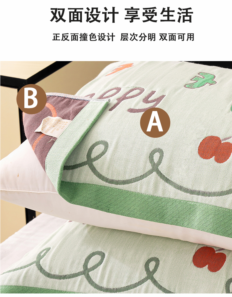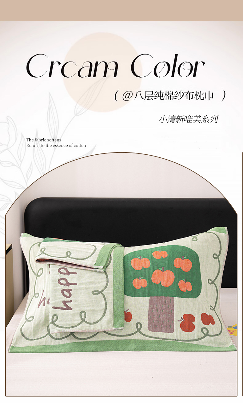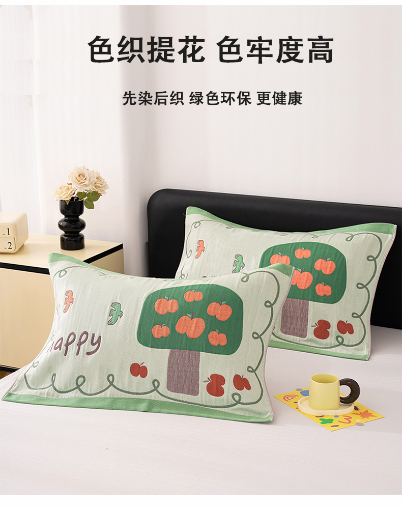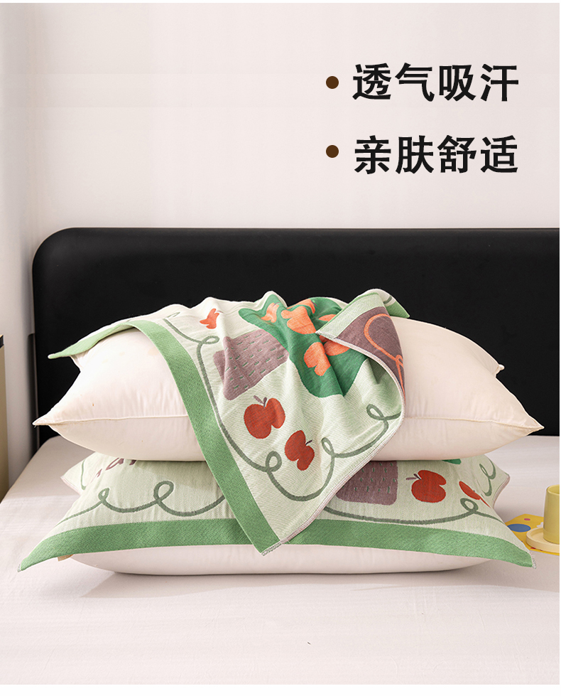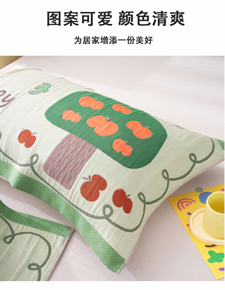 商品名称:棠薇家纺 2025新款加厚枕巾全棉纱布枕巾纯棉一对装枕头巾八层纱布枕巾 52*78±2cm 苹果树绿
