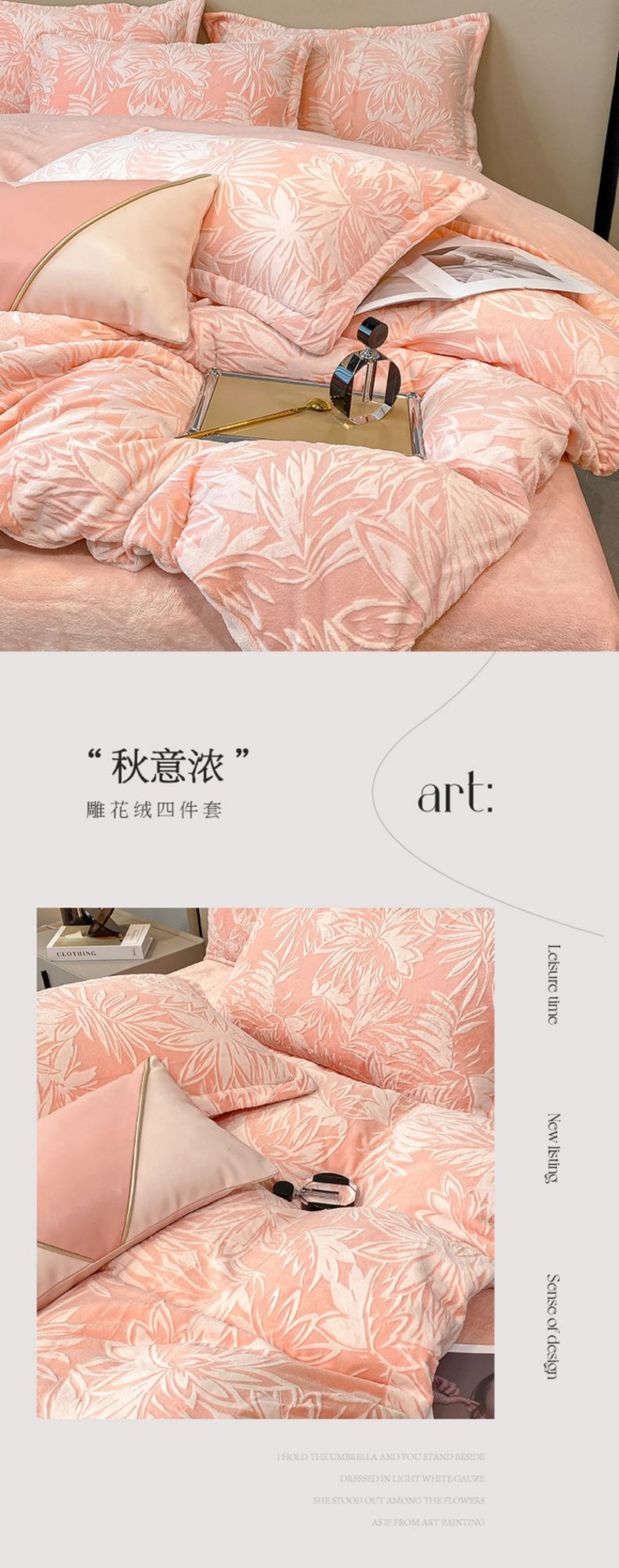 商品名称:金喜 2024新款加厚保暖230克高克重牛奶绒四件套雕花绒四件套-牛奶绒雕花系列 秋意浓