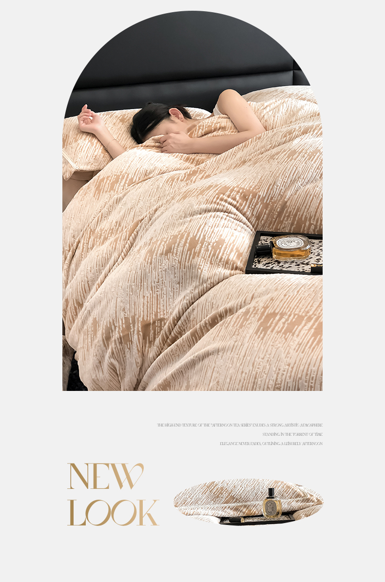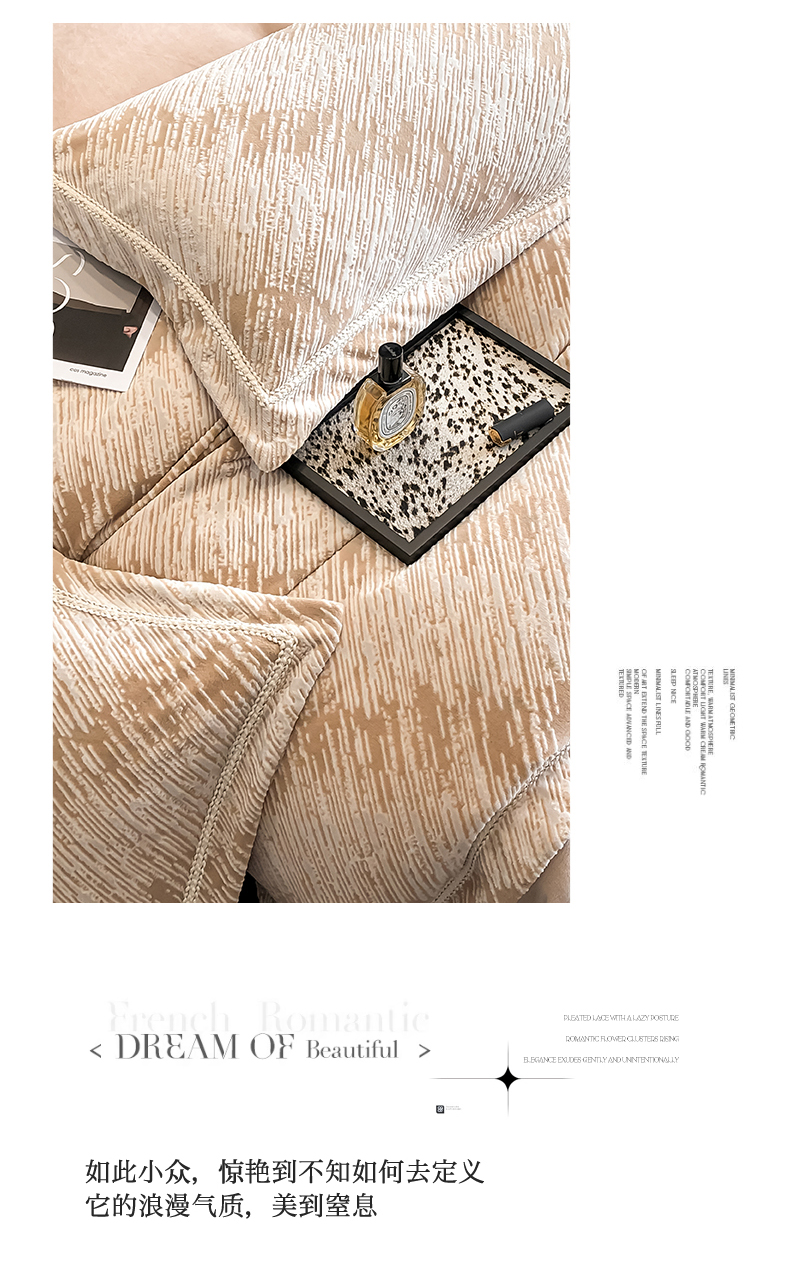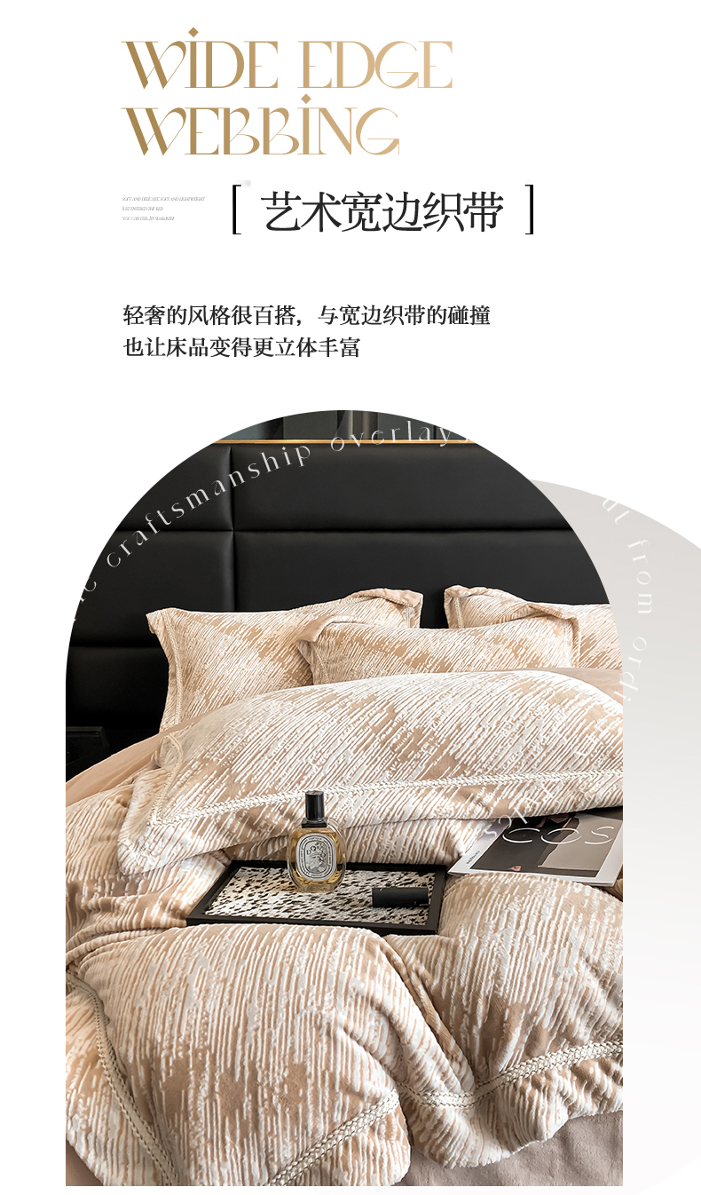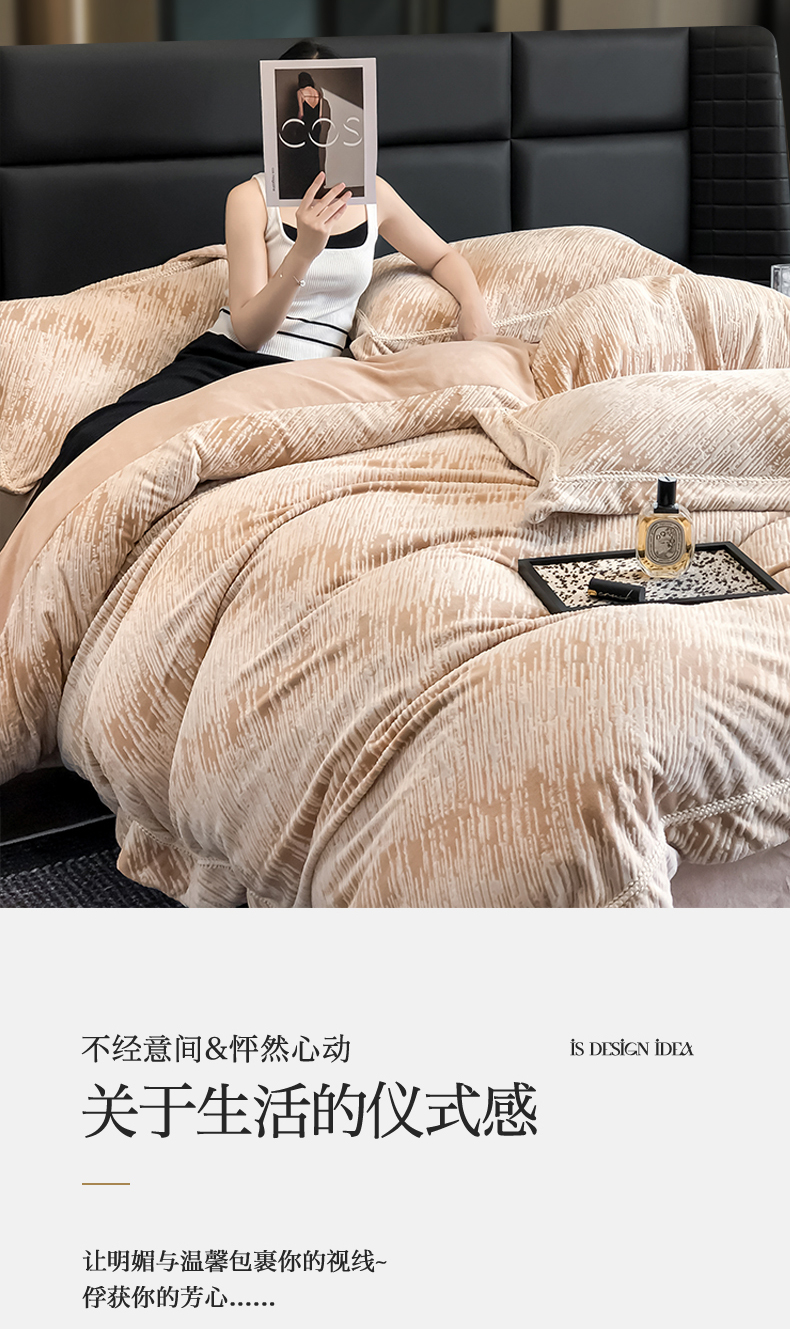 (总)金喜 2024新款高克重全消光牛奶绒雕花绒轻奢风四件套加厚双面牛奶绒四件套-星川鎏金梦系列,蜜茶棕,清水绿,桃花粉,浅灰棕