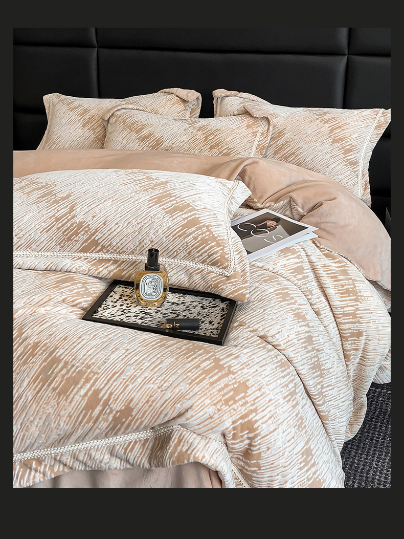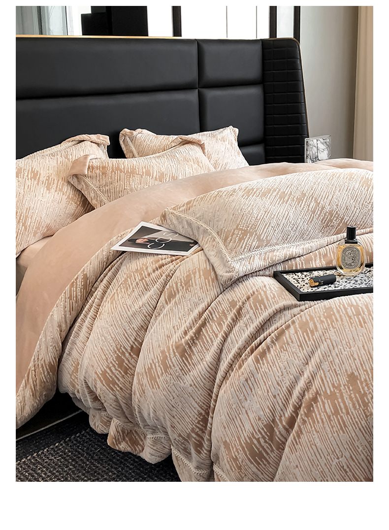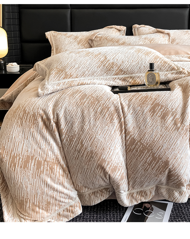 (总)金喜 2024新款高克重全消光牛奶绒雕花绒轻奢风四件套加厚双面牛奶绒四件套-星川鎏金梦系列