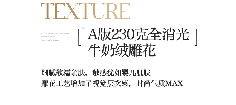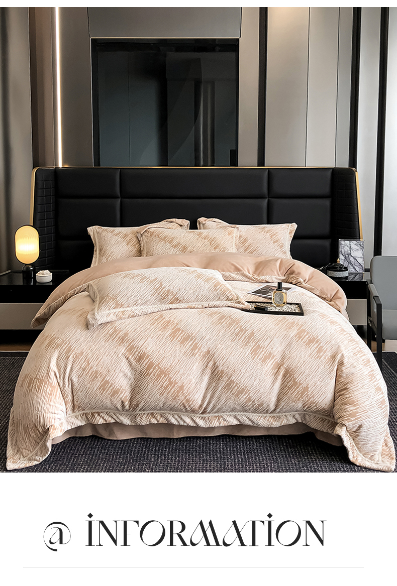商品名称:(总)金喜 2024新款高克重全消光牛奶绒雕花绒轻奢风四件套加厚双面牛奶绒四件套-星川鎏金梦系列