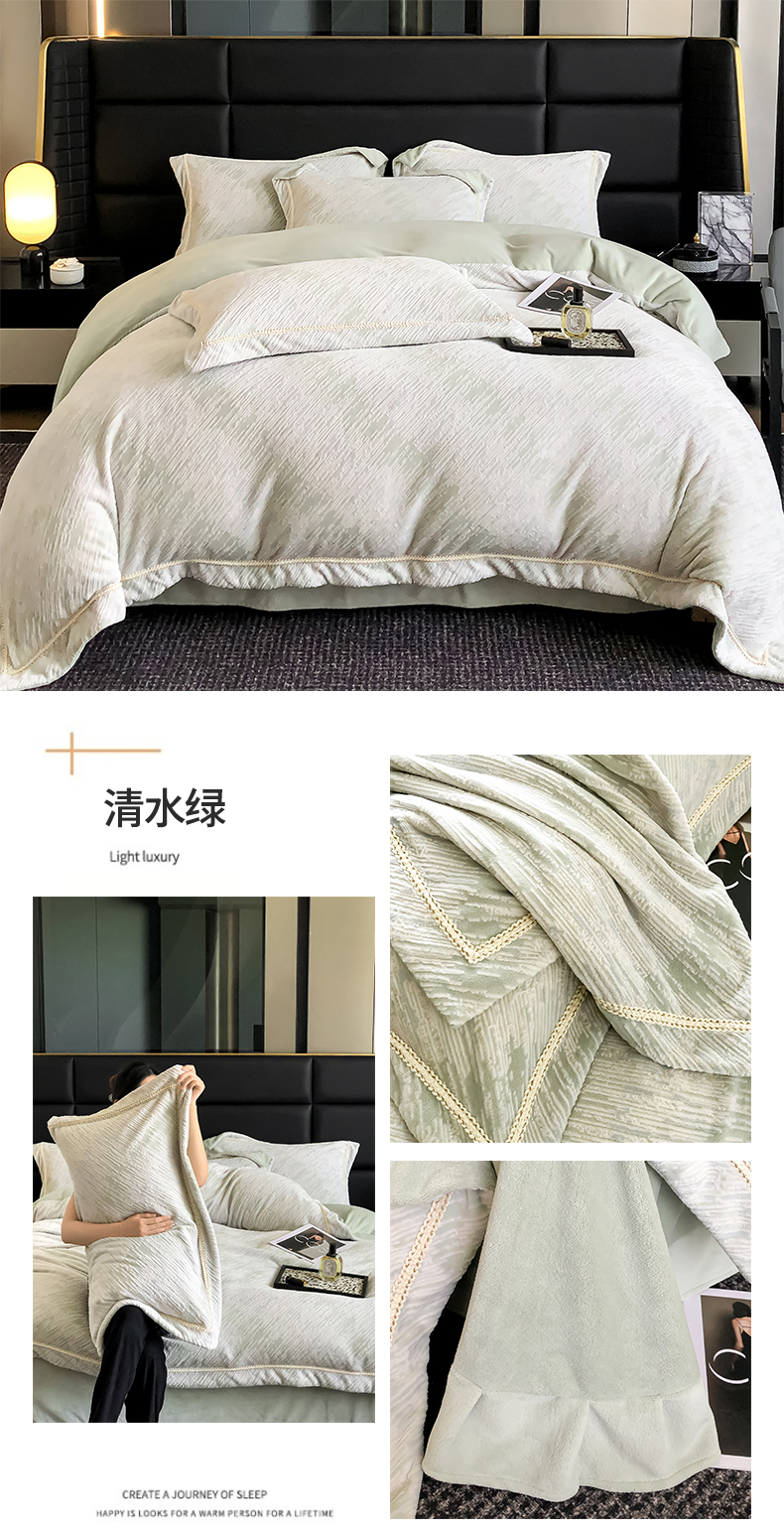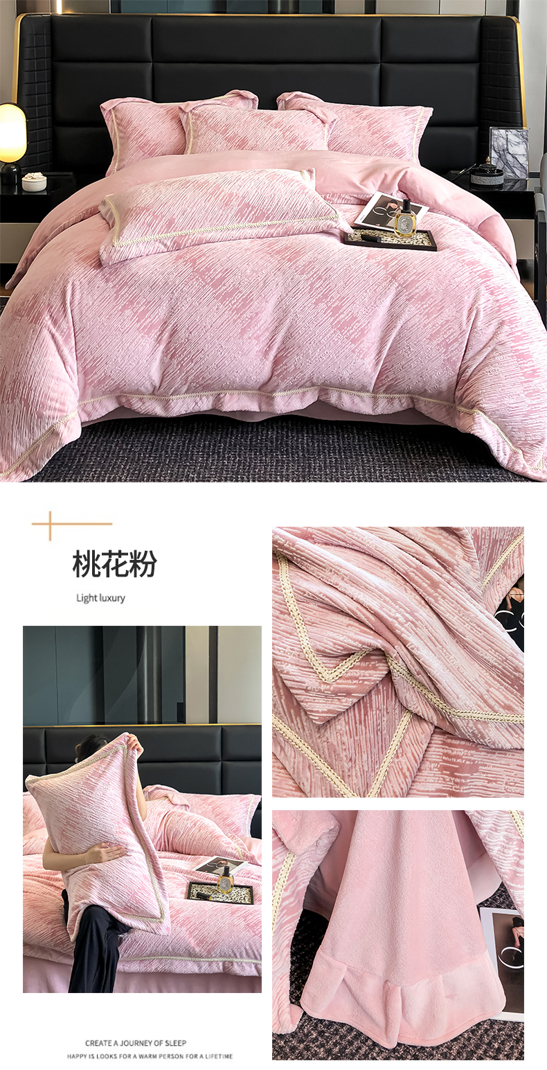 (总)金喜 2024新款230克高克重牛奶绒雕花四件套优雅风牛奶绒套件-木槿系列,木槿-粉,木槿-绿