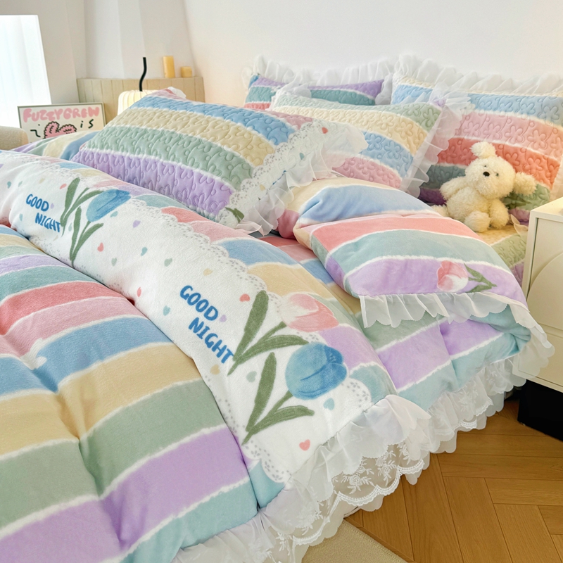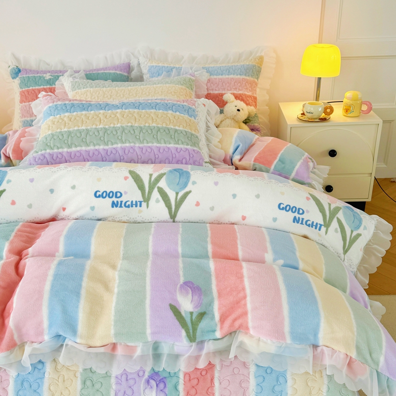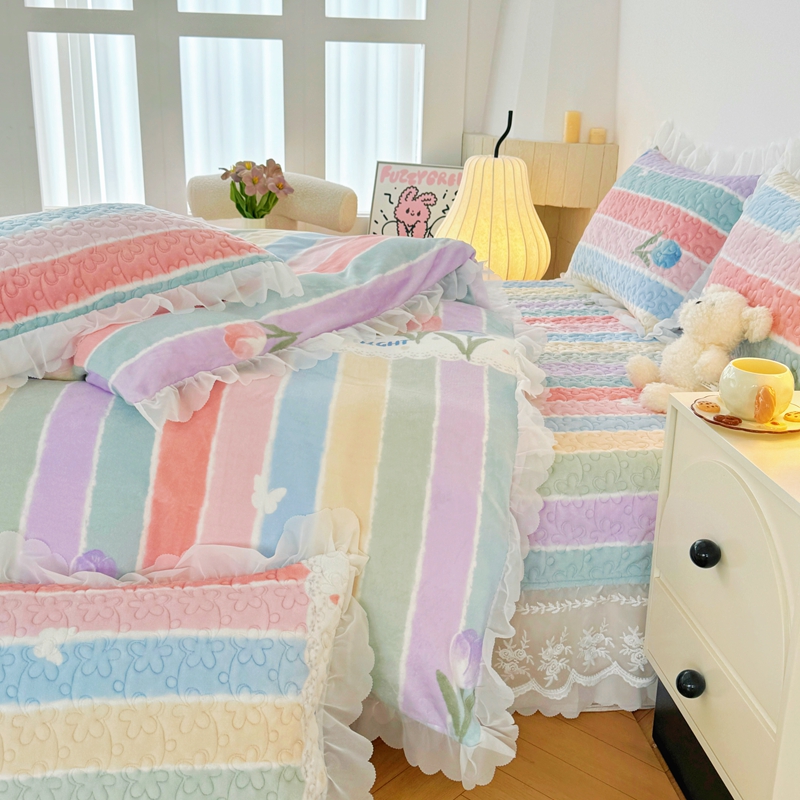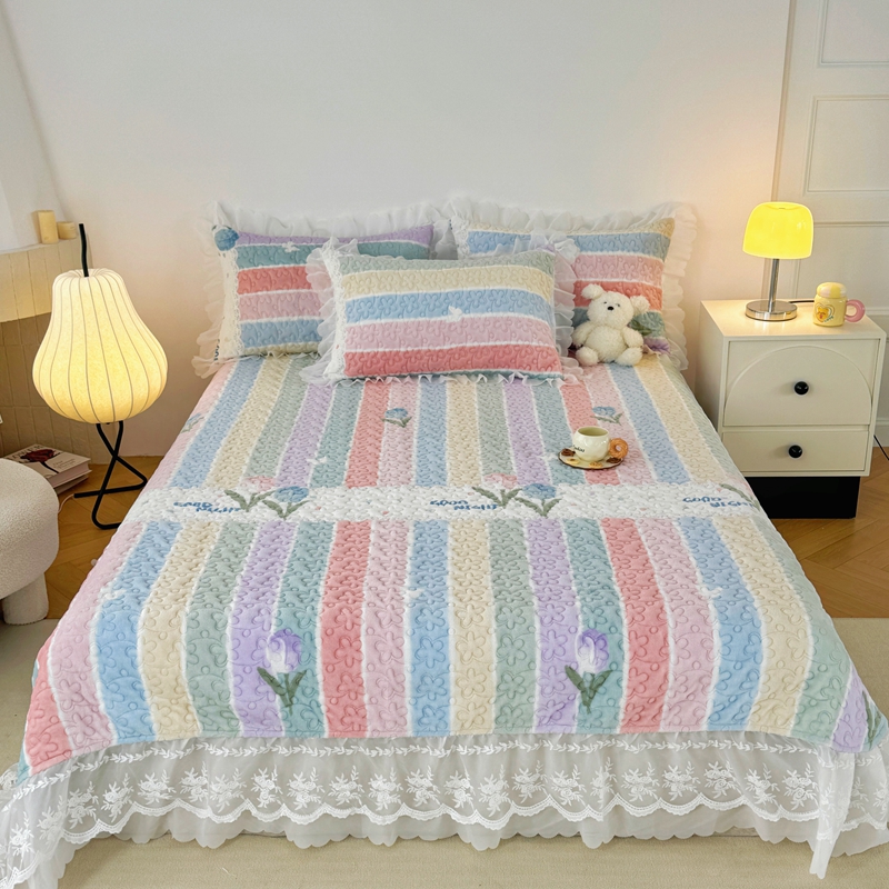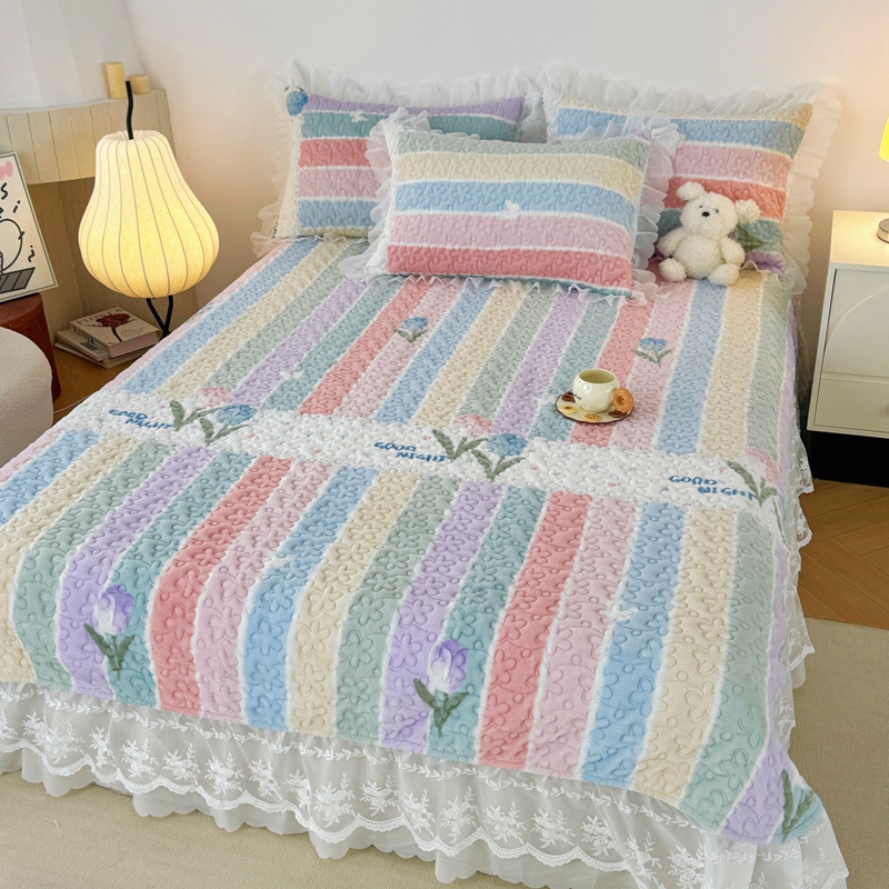 商品名称:添越 2024新款牛奶绒夹棉床盖三件套四件套 彩虹郁金香