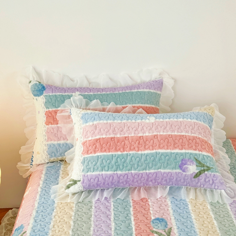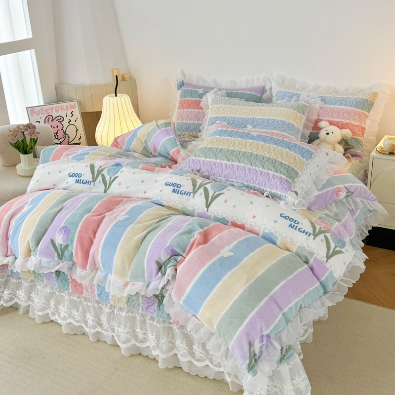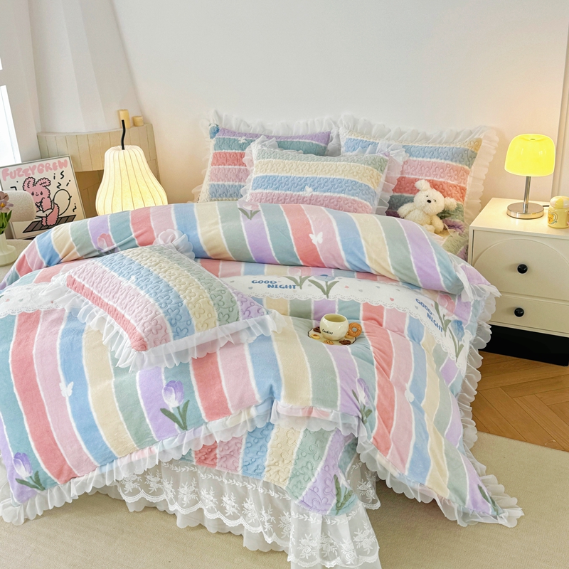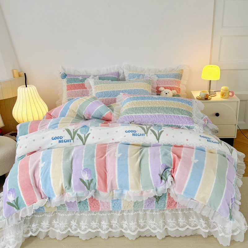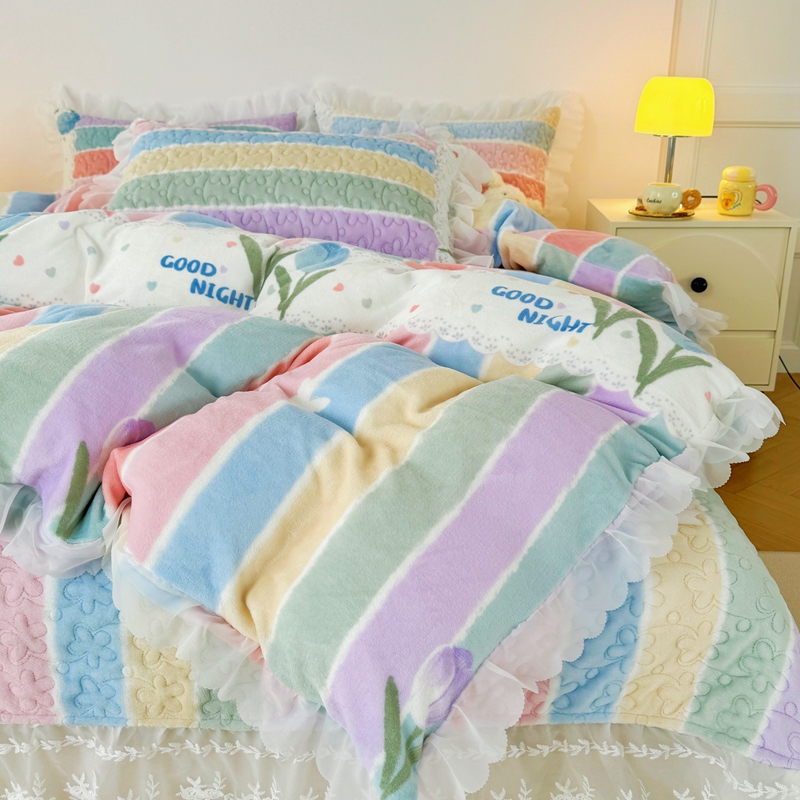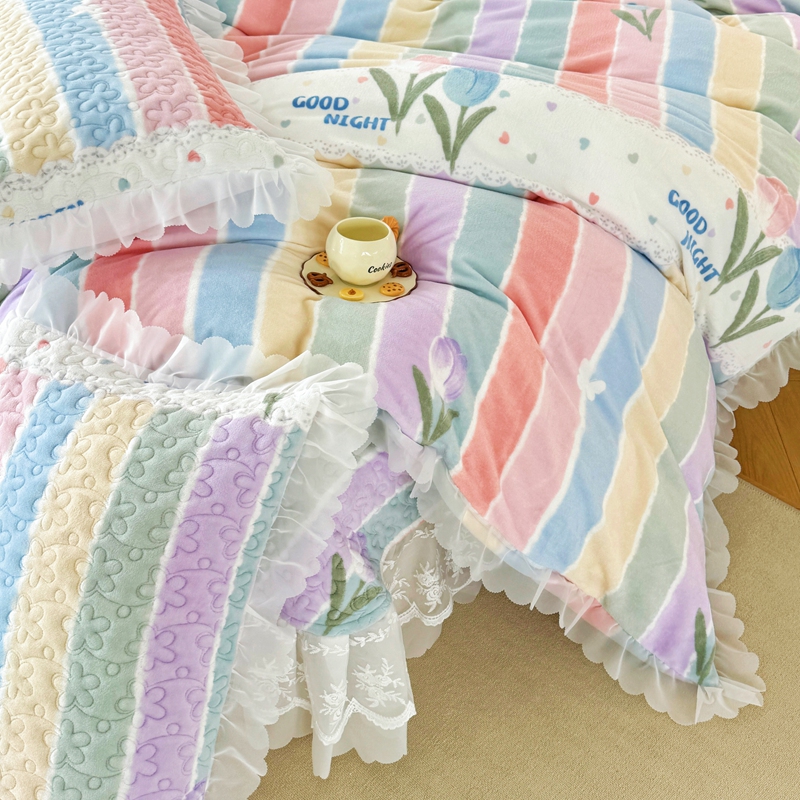 商品名称:添越 2024新款牛奶绒夹棉床盖三件套四件套 彩虹郁金香