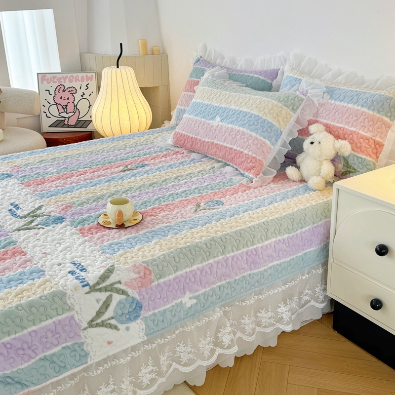 添越 2024新款牛奶绒夹棉床盖三件套四件套 彩虹郁金香