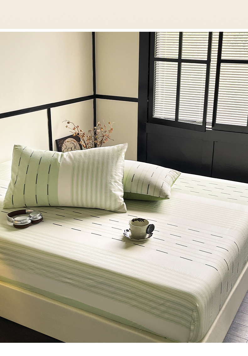 雅居纺家纺 2024新款100%全棉提花单床笠-如初 如初-绿