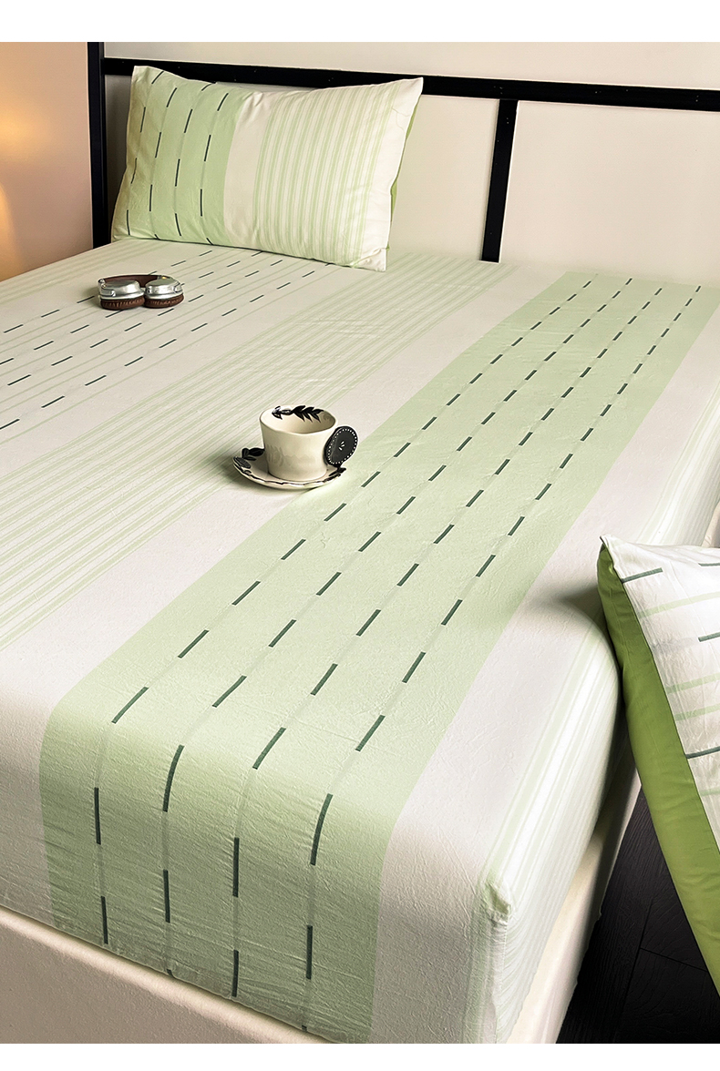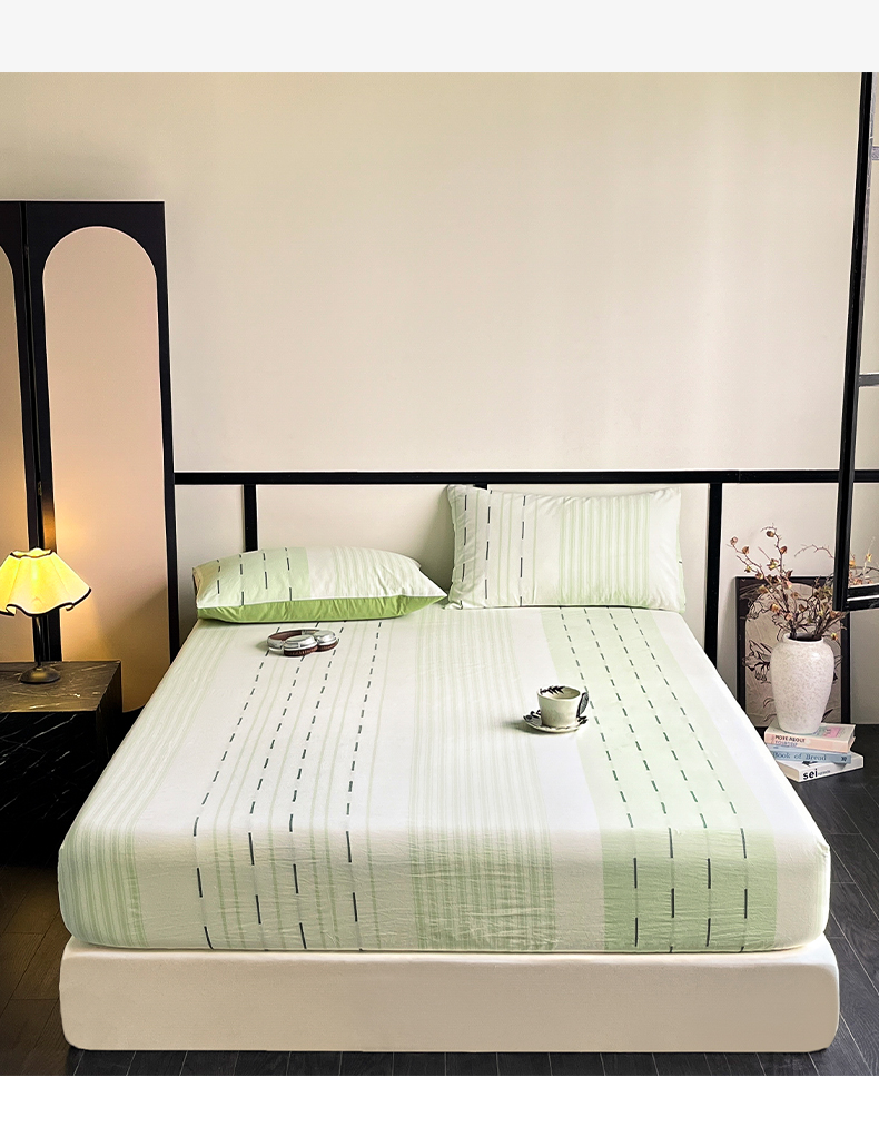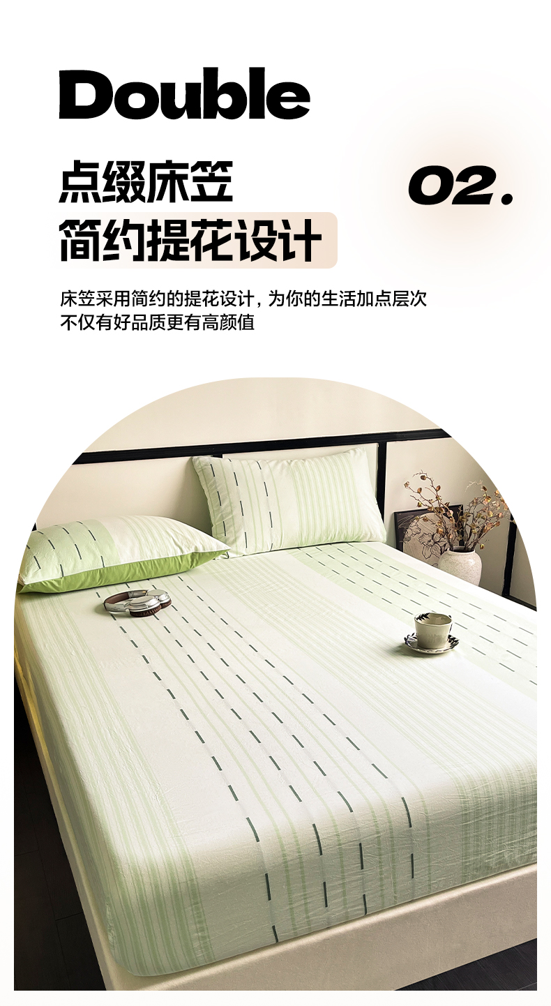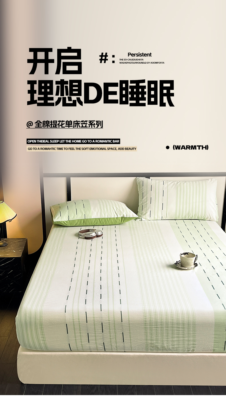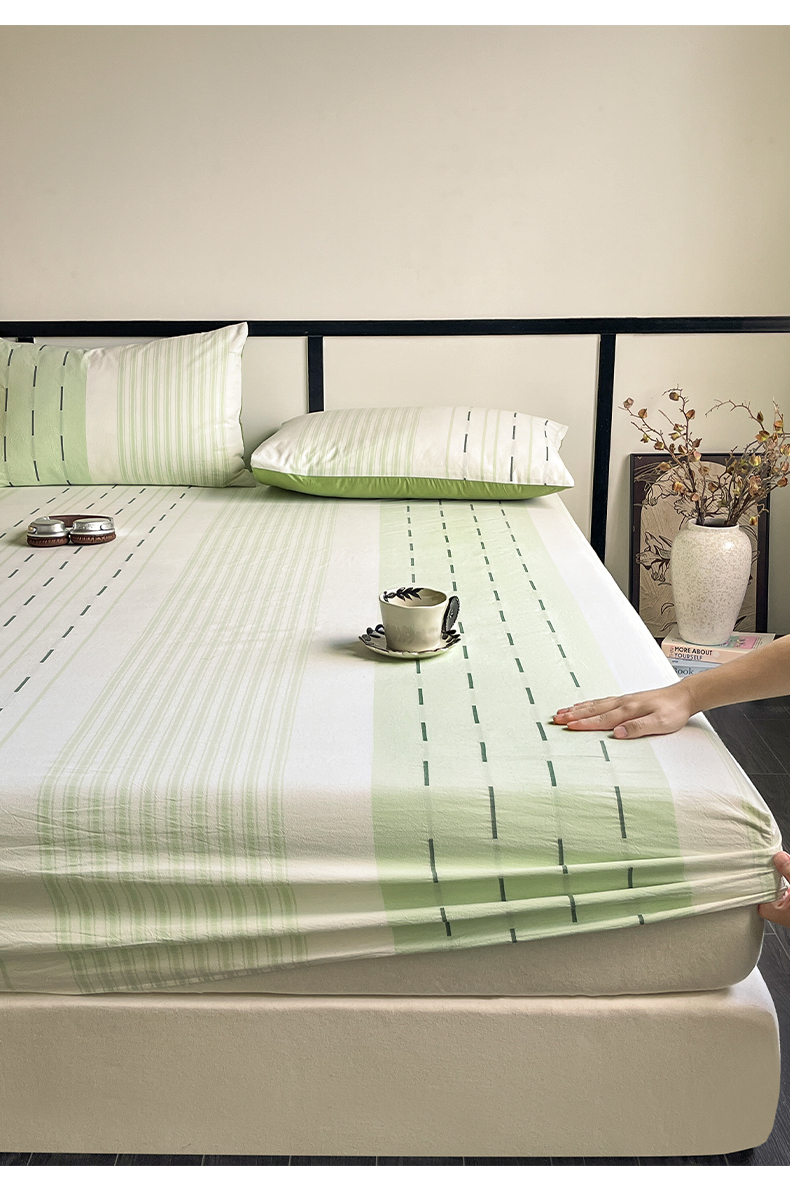 商品名称:雅居纺家纺 2024新款100%全棉提花单床笠-如初 如初-绿
