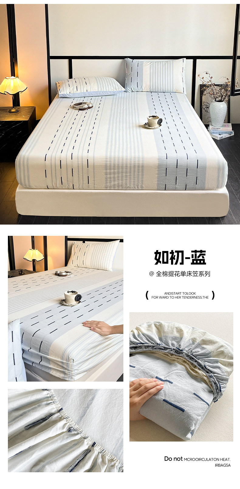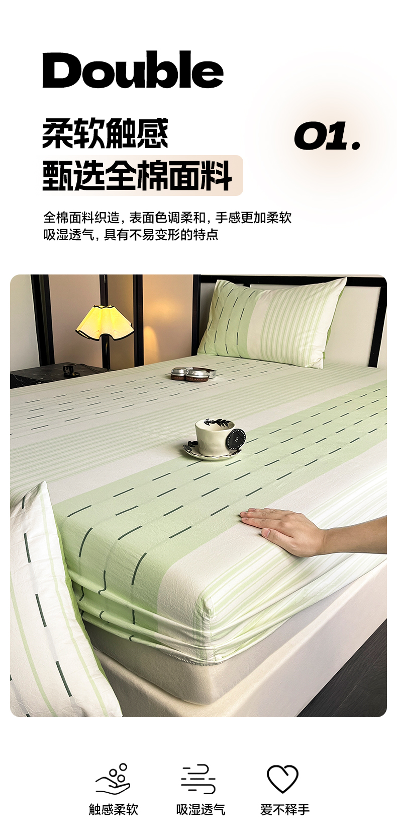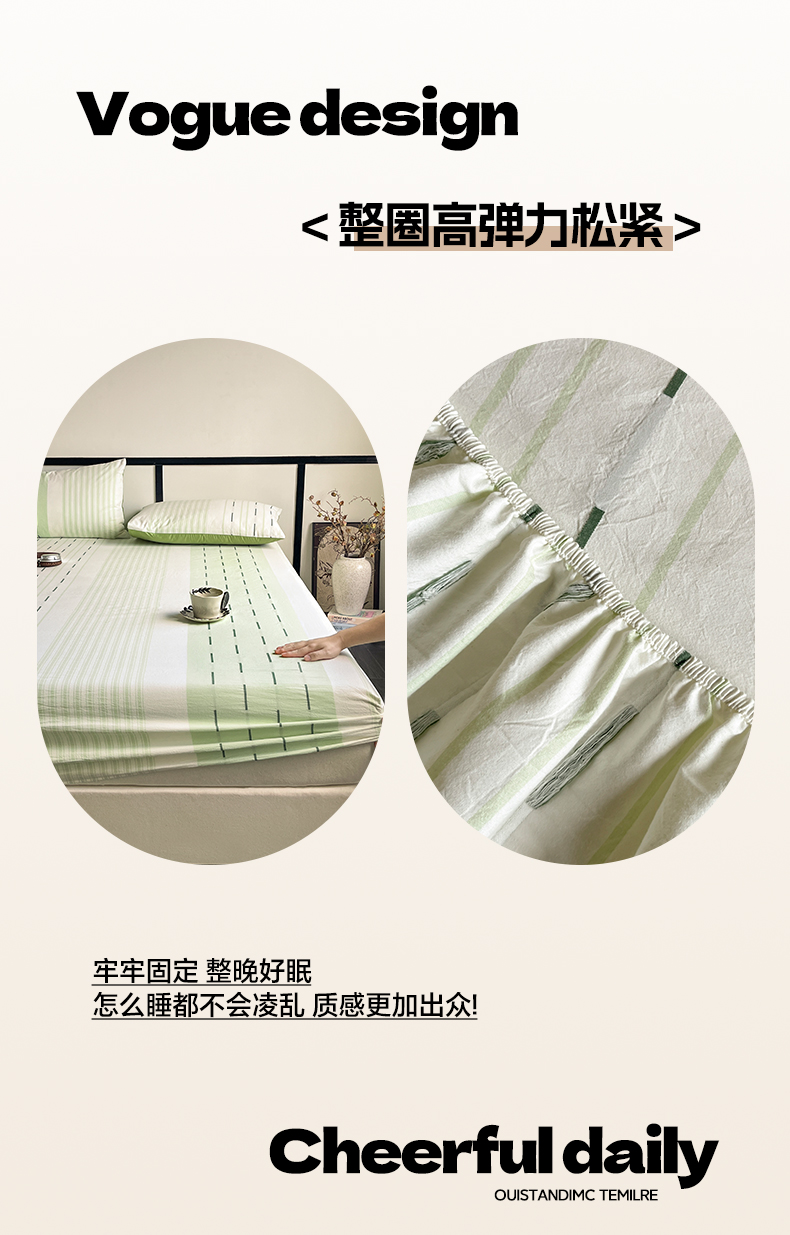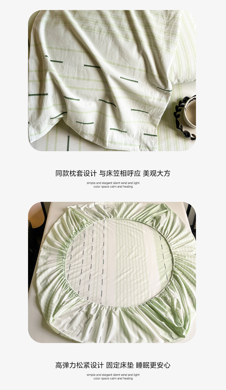 商品名称:雅居纺家纺 2024新款100%全棉提花单床笠-如初 如初-绿