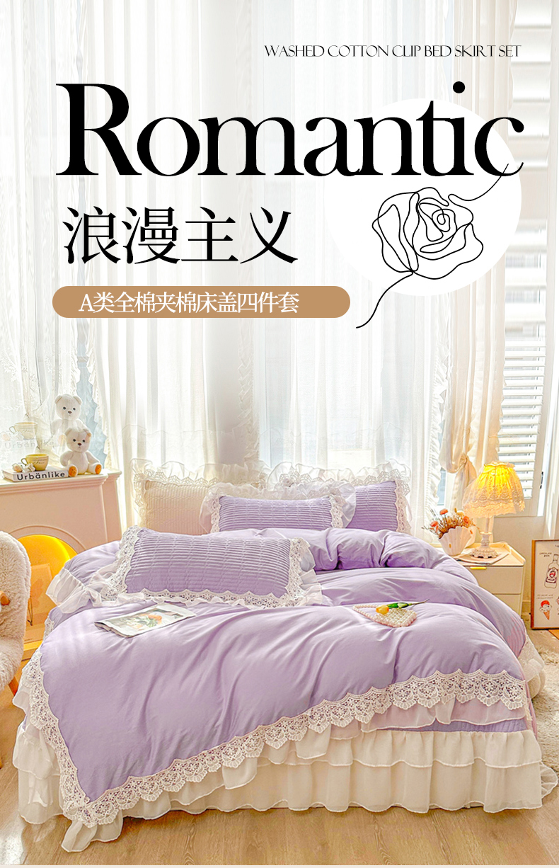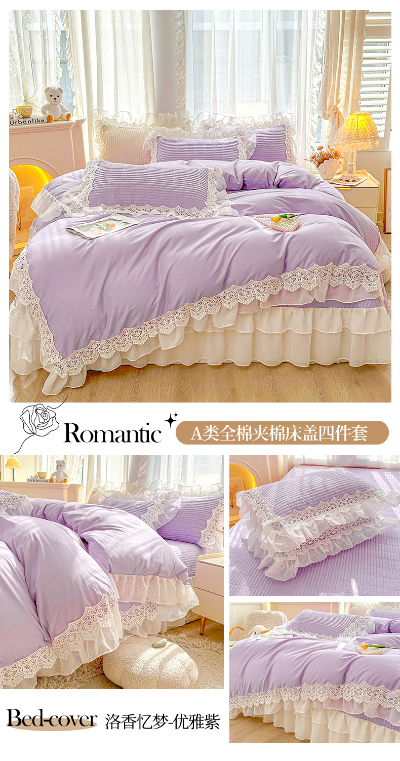 当前位置: 91家纺网 > 商品网购 > 床品套件 > 四件套 > 全棉普通四件套 > 虹星家纺 2024新款A类全棉夹棉床盖四件套-洛香忆梦 洛香忆梦-优雅紫