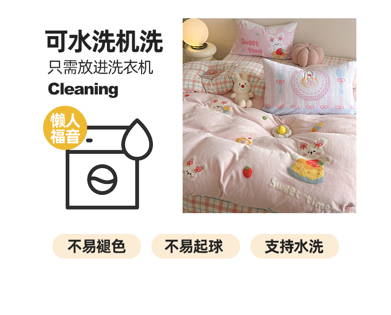 (总)眠屿家纺 2025新款加厚牛奶绒毛巾绣四件套,乐趣,面包狗,玩偶,玩泡泡