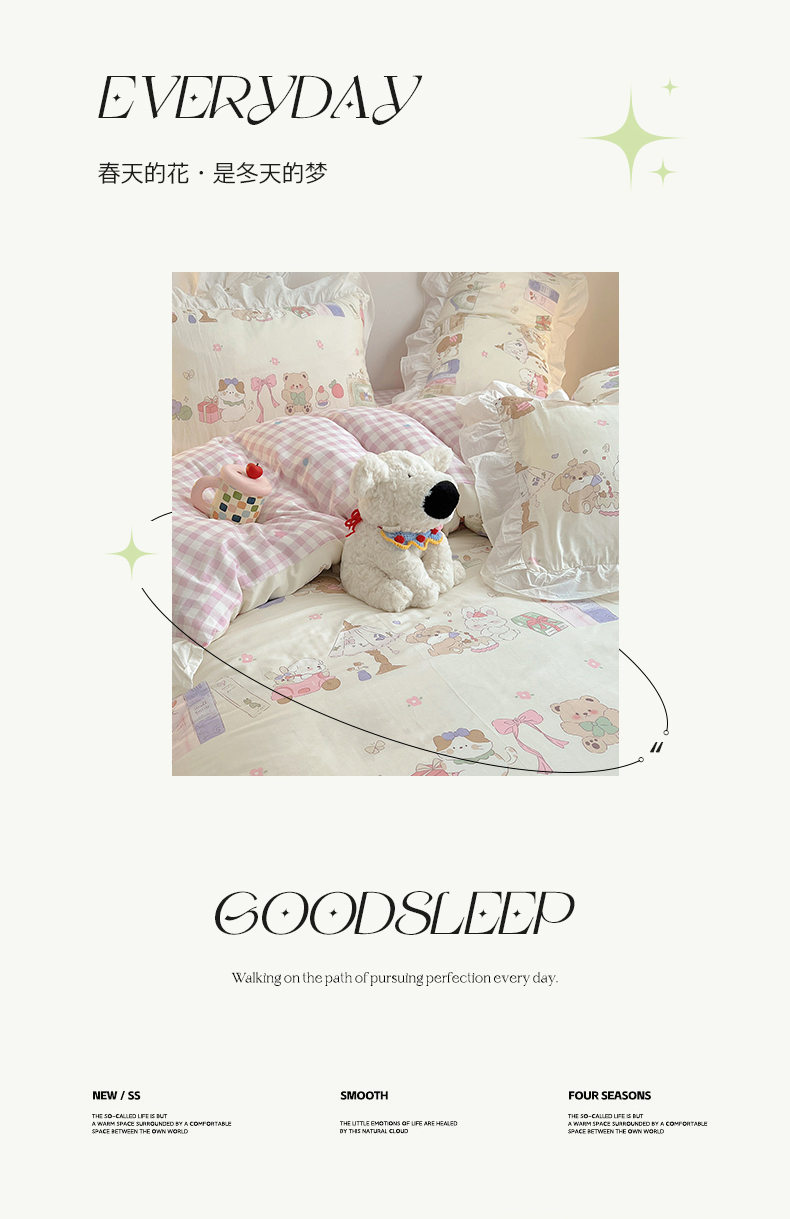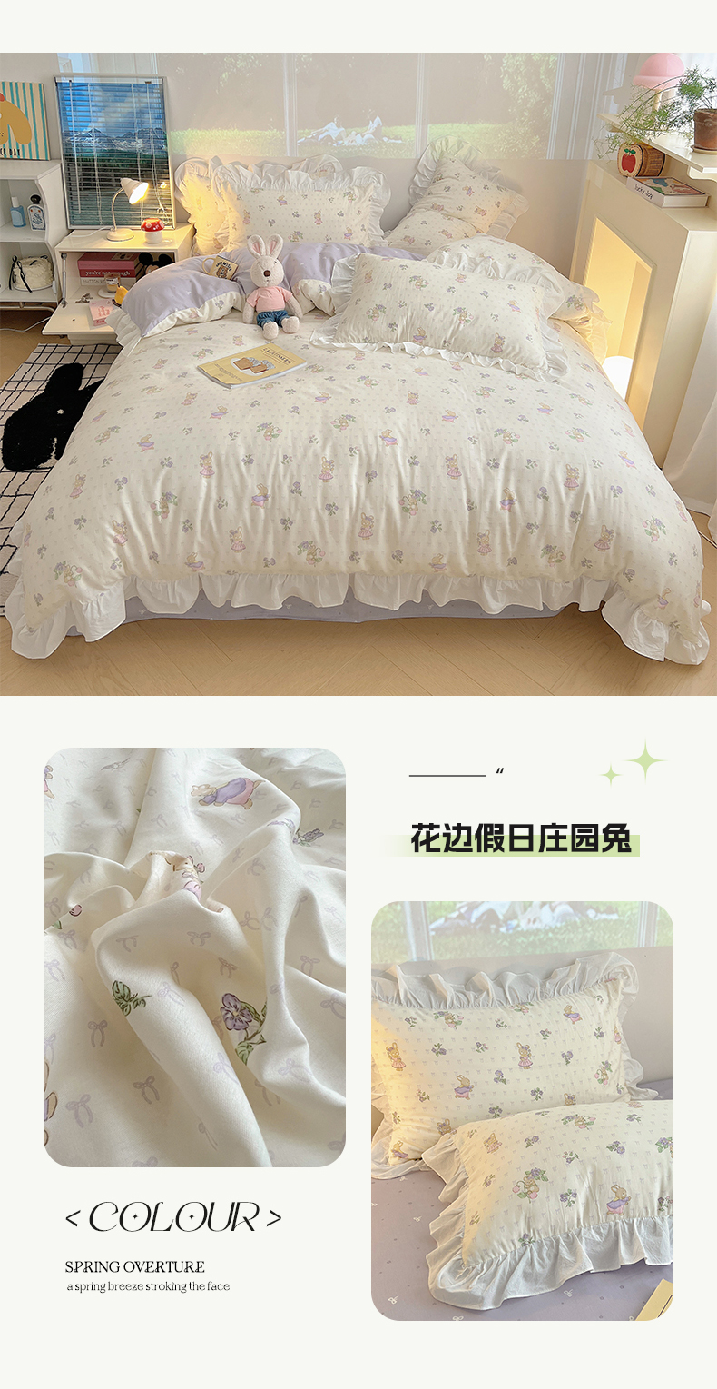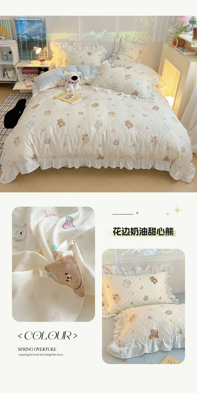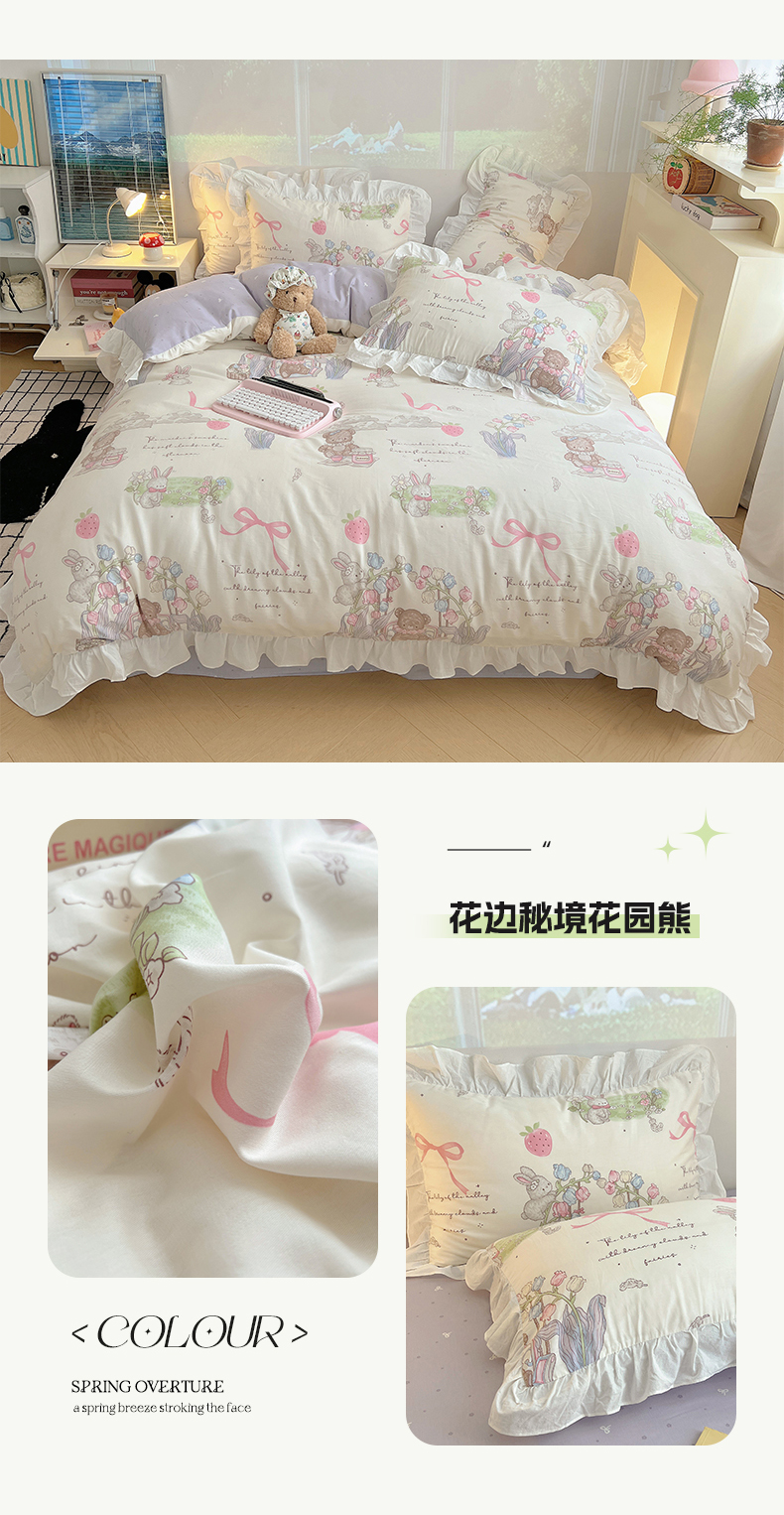 商品名称:(总)六巷胡同 2025新款40支12868韩式INS减龄花边款全棉卡通四件套
