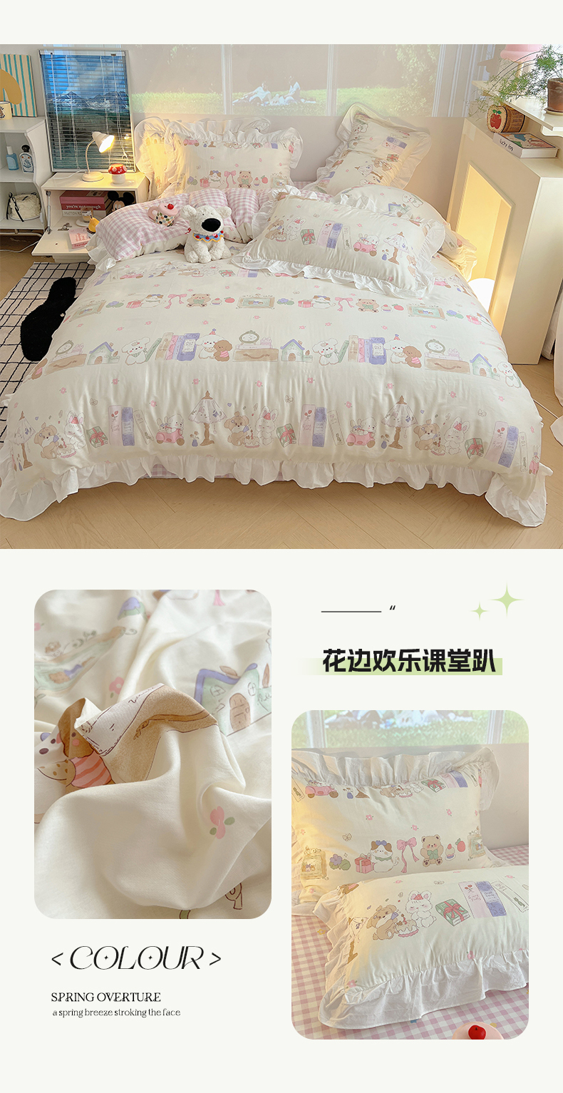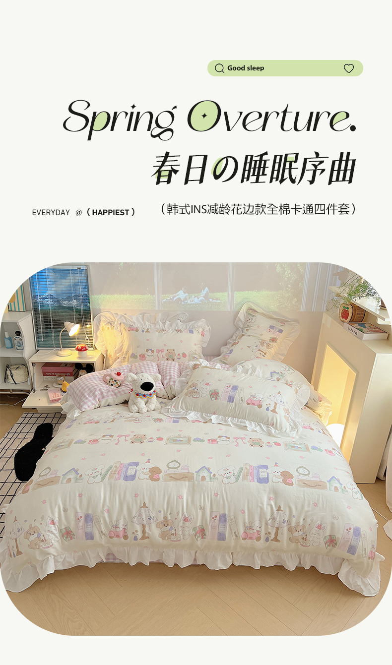 (总)六巷胡同 2025新款40支12868韩式INS减龄花边款全棉卡通四件套