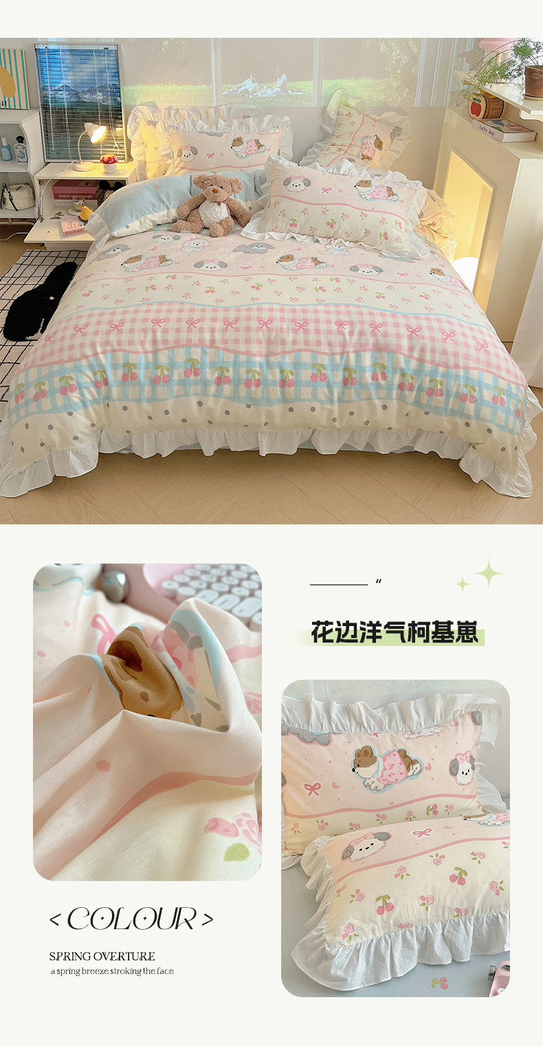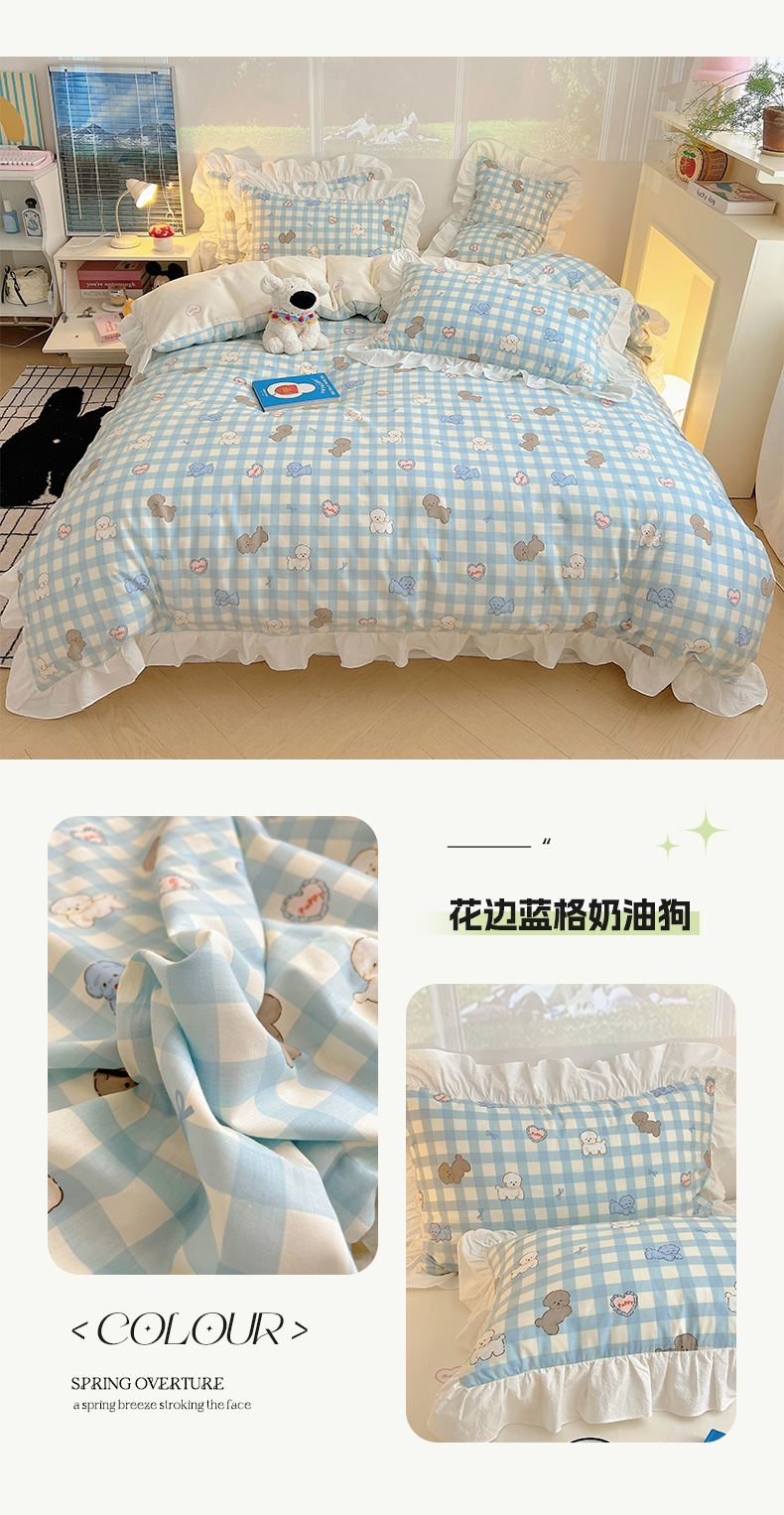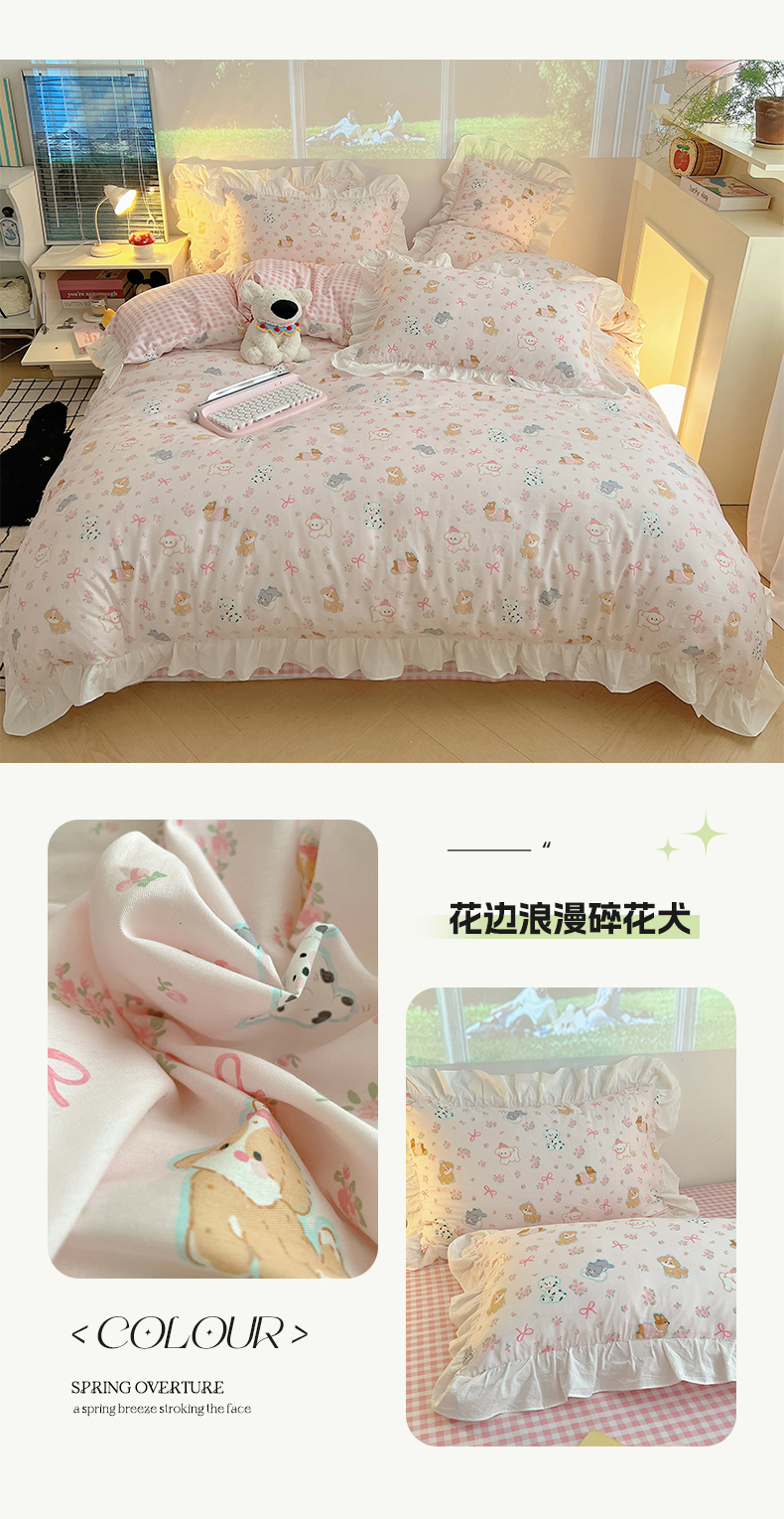 (总)六巷胡同 2025新款韩式INS卡通减龄花边款全棉四件套(第三系),花边波点嘟嘟猫,花边点点面包犬,花边调皮蔷薇狗,花边法棍滑板狗,花边粉格元气猫,花边哈喽泡芙猫,花边蓝格邦尼熊,花边蓝格插画犬,花边泡芙萌趣狗,花边森林音乐会,花边仙人掌粉象,花边熊熊猫咪崽,花边郁金香狗狗