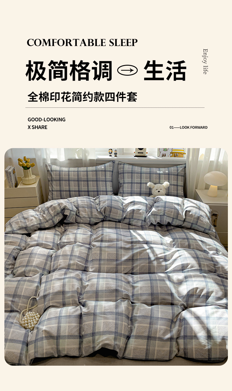 捌月 2025新款13372喷气全棉四件套-简约风系列 格调