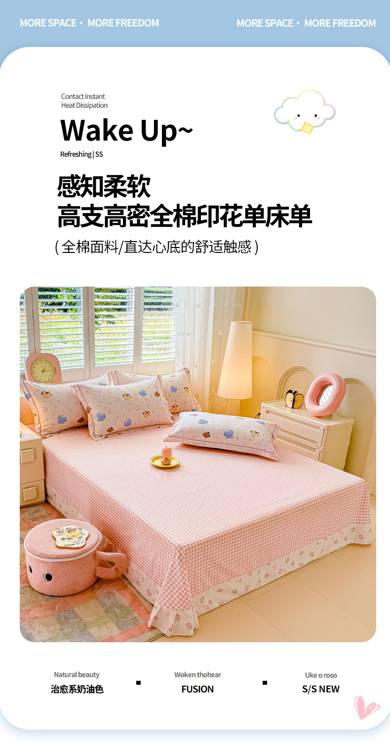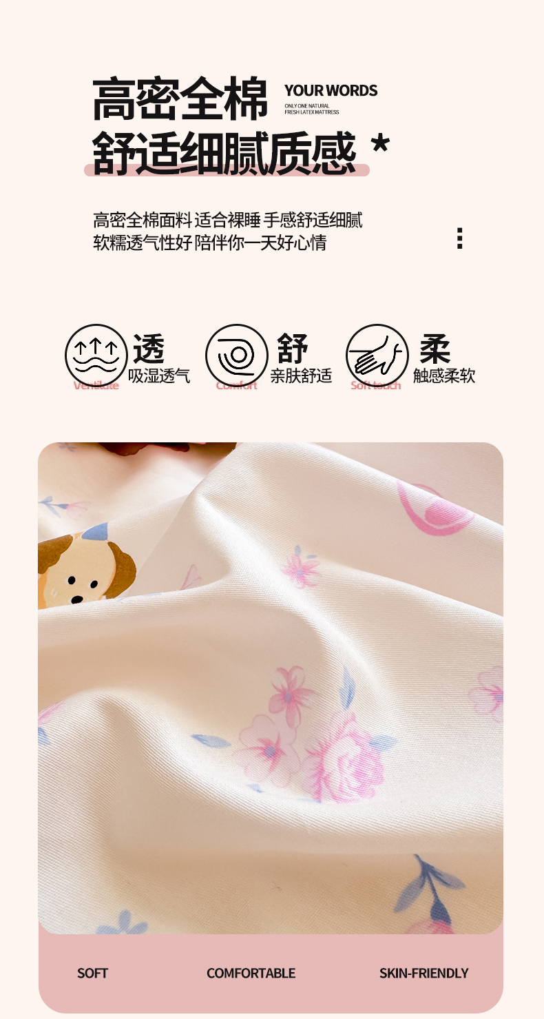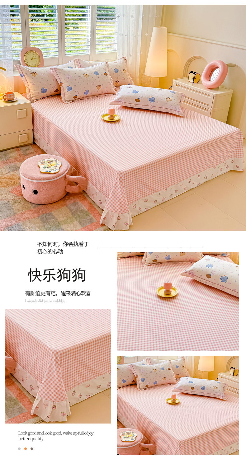 洺兰家居 2025年新款全棉A类全喷气印花小清新单床单 快乐狗狗