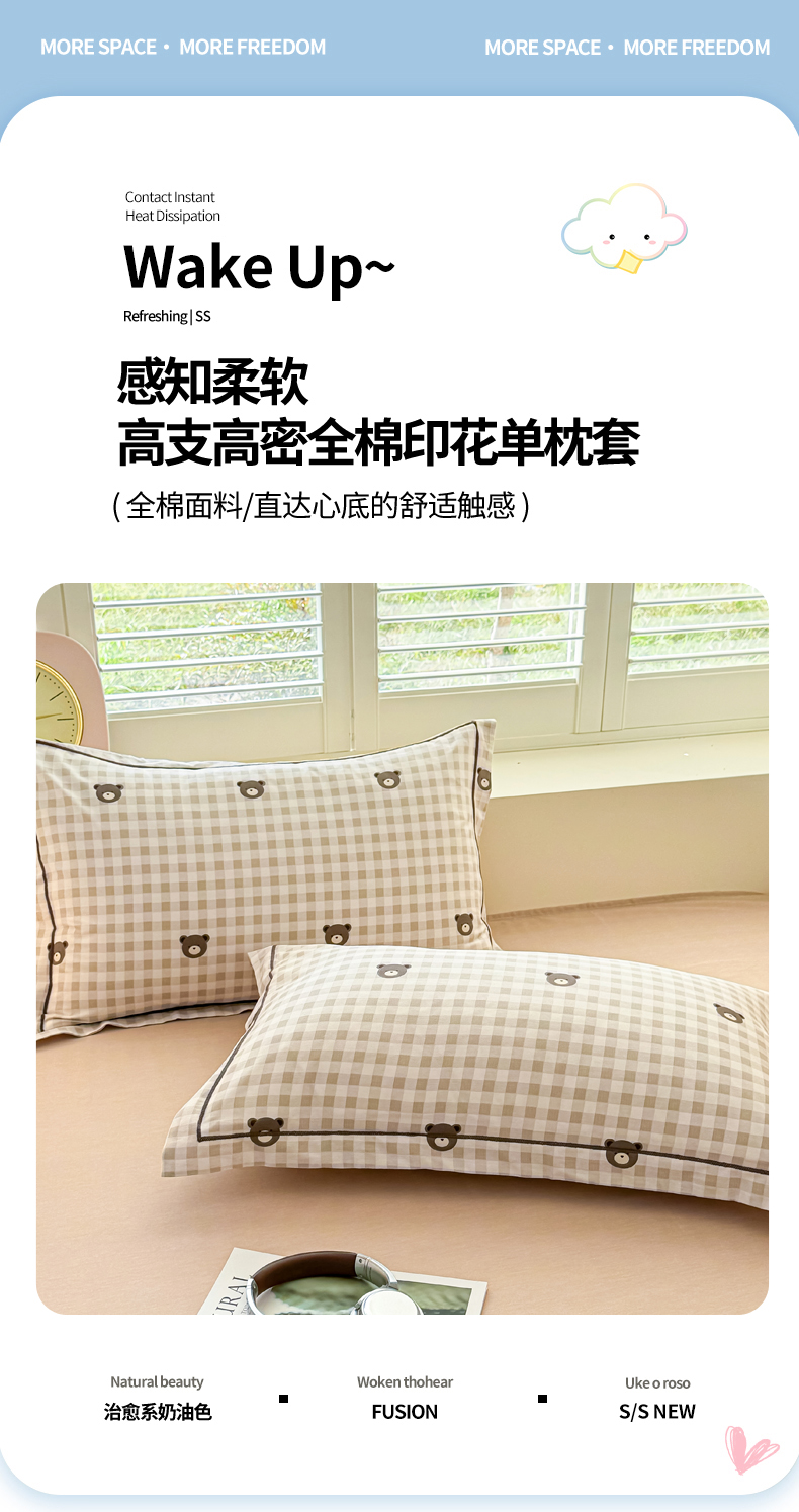 商品名称:洺兰家居 2025年新款全棉A类全喷气印花小清新单枕套 熊出没
