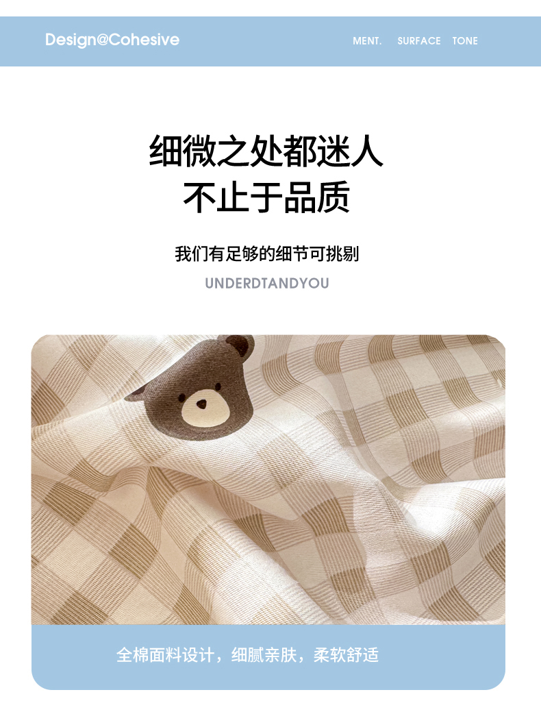 洺兰家居 2025新款13070全棉单被套 波波熊,波波熊