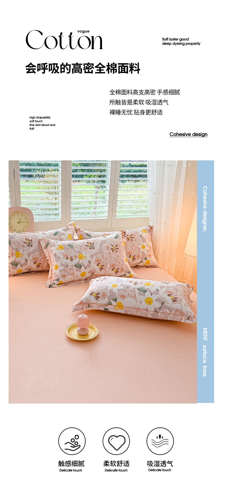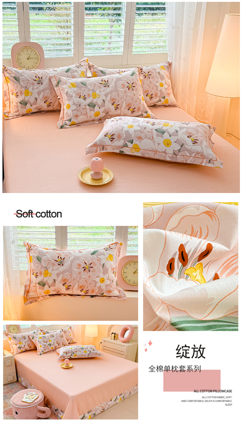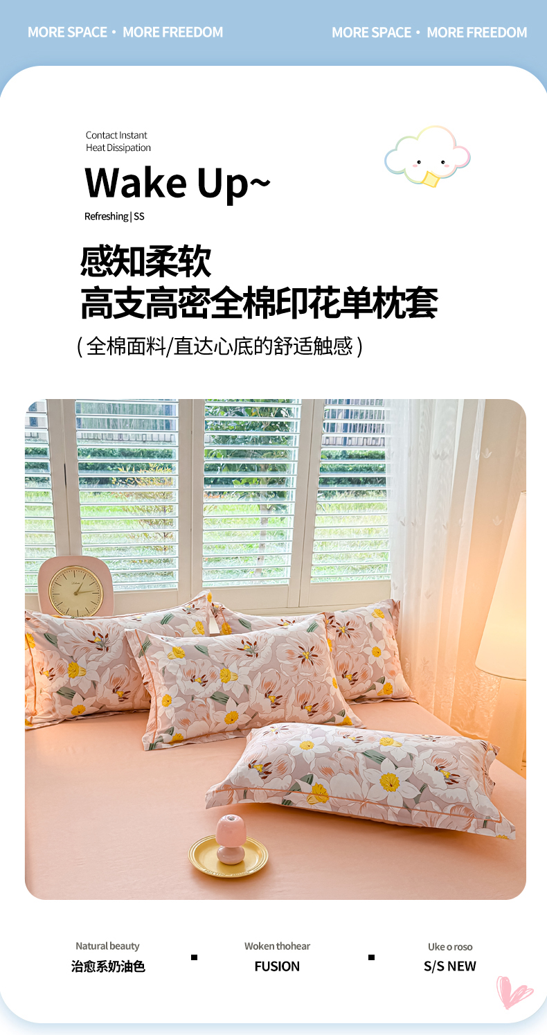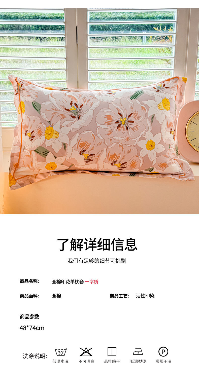 商品名称:洺兰家居 2025年新款全棉A类全喷气印花小清新单枕套 绽放