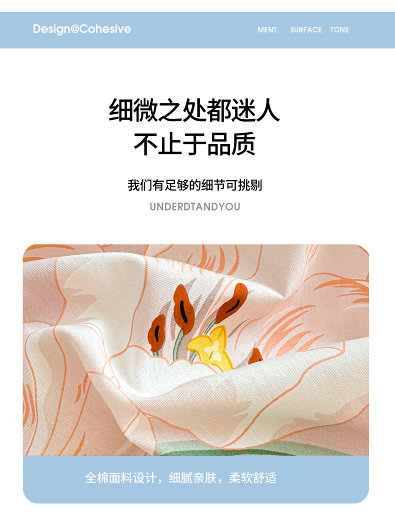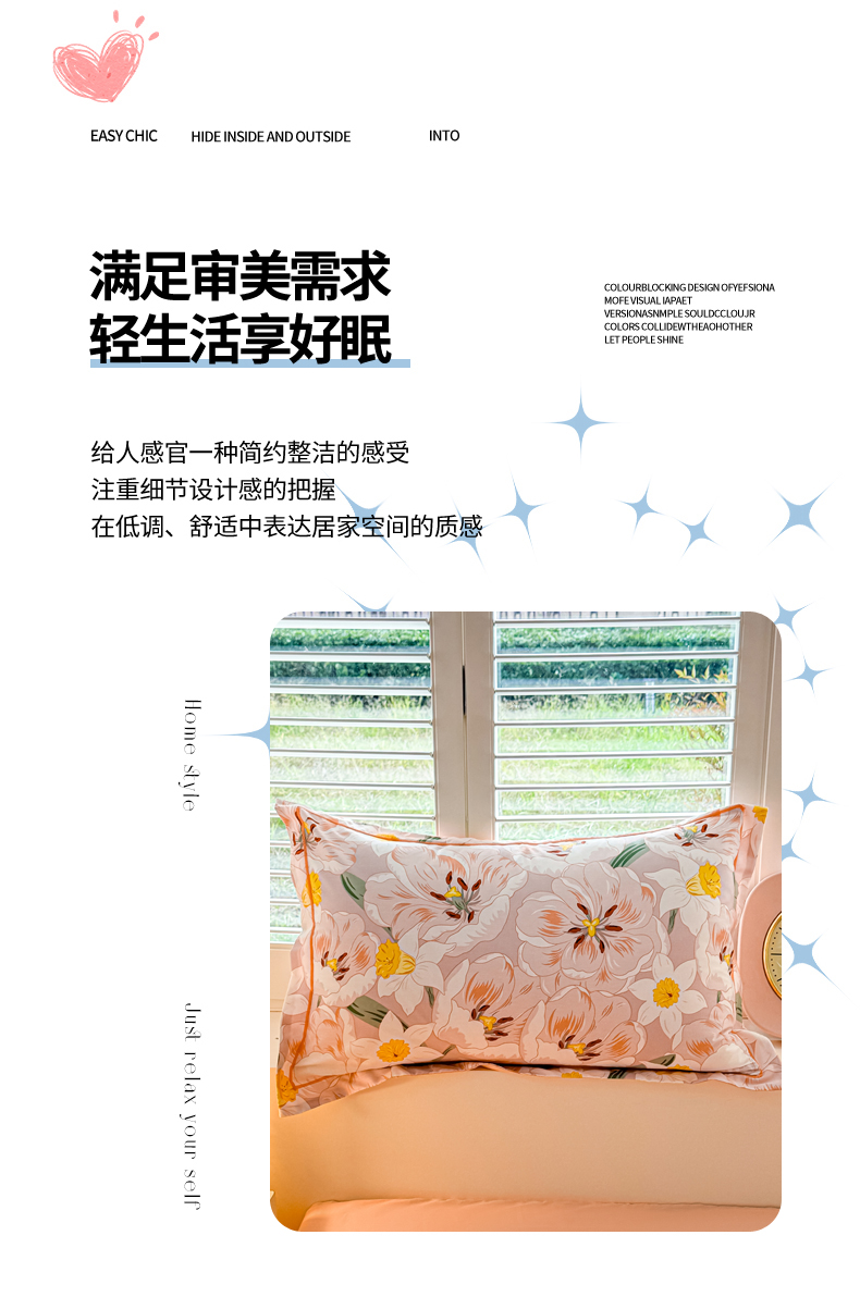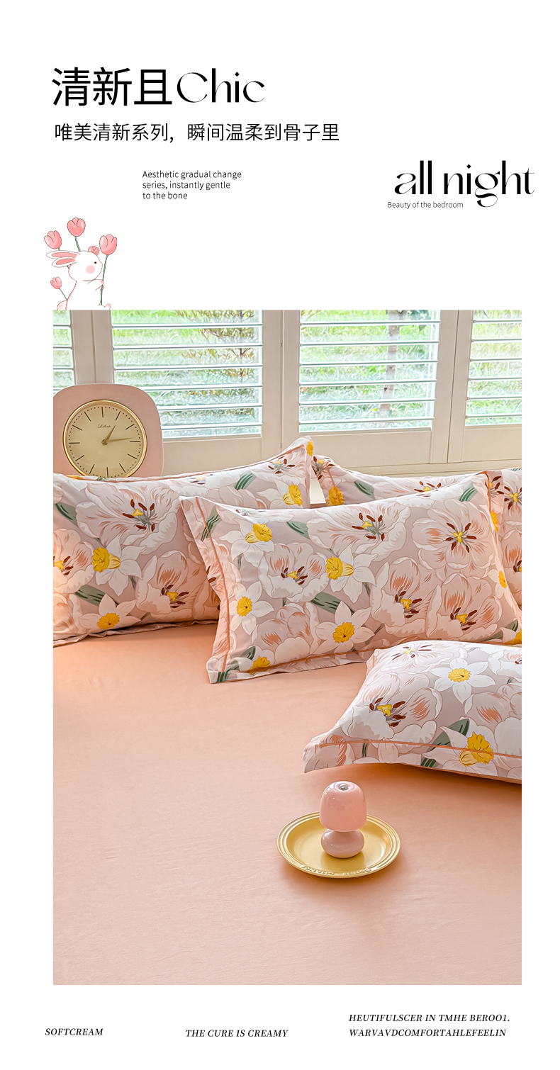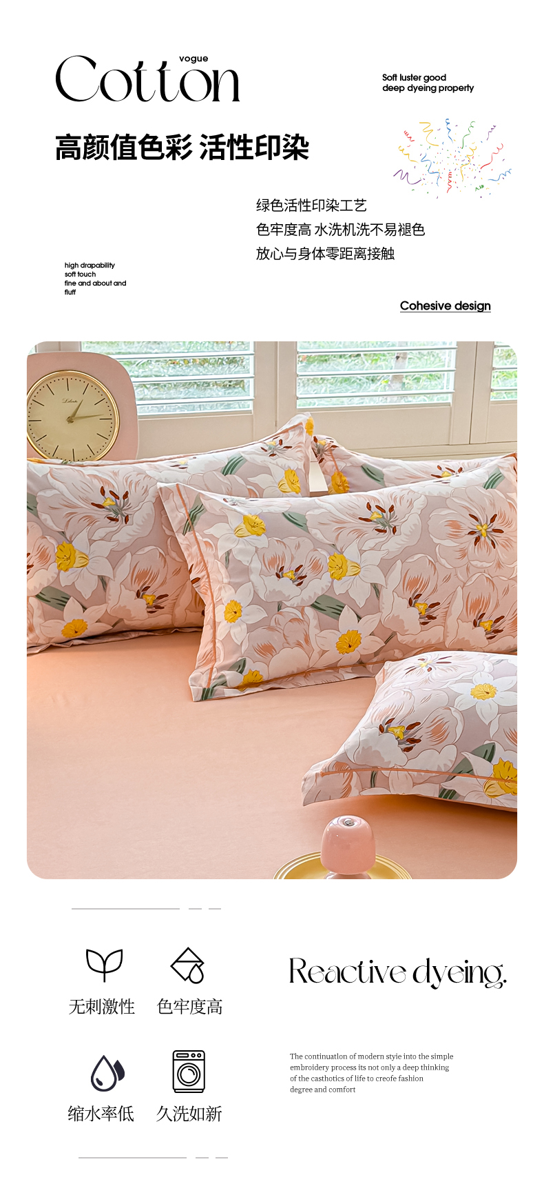商品名称:洺兰家居 2025年新款全棉A类全喷气印花小清新单枕套 绽放