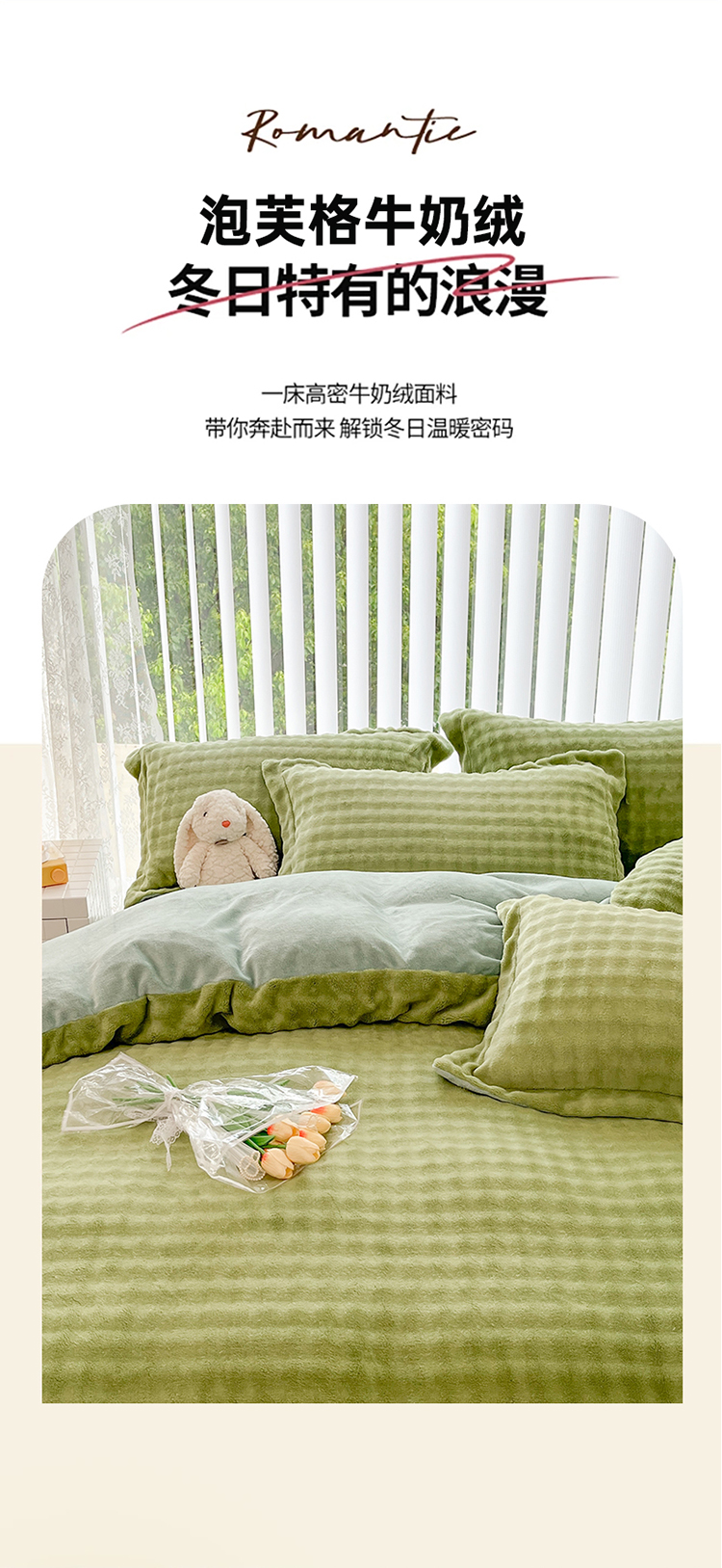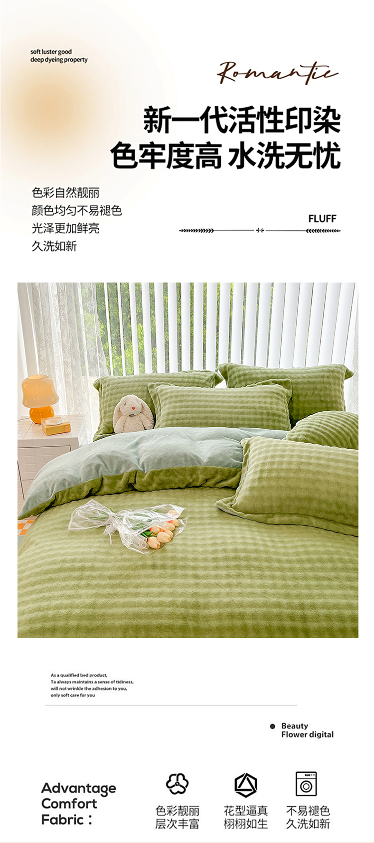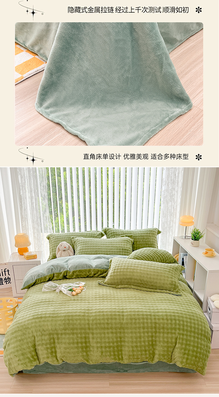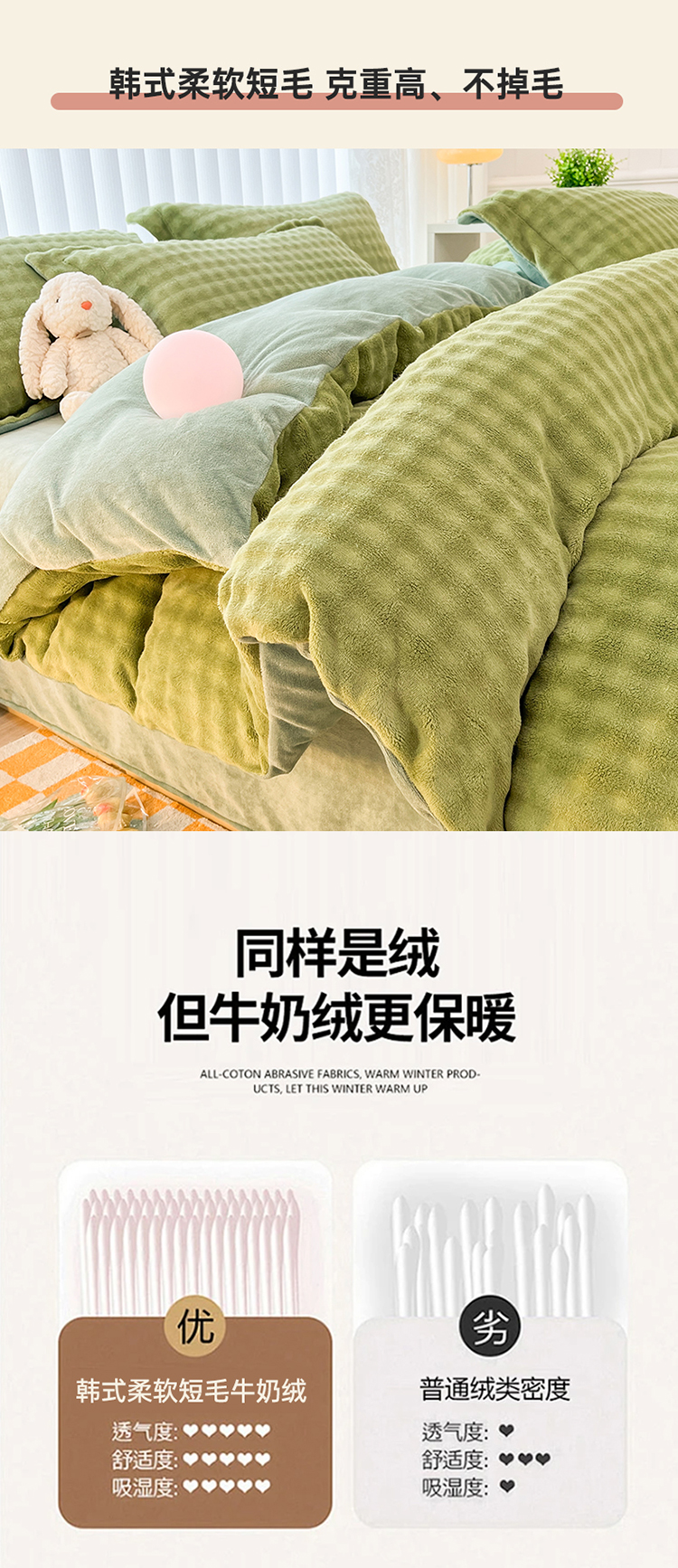当前位置: 91家纺网 > 商品网购 > 床品套件 > 四件套 > 其它四件套 > (买家秀爆款不断货)A类母婴级高克重纯色獭兔绒四件套剪花牛奶绒四件套牛奶绒四件套纯色韩式兔毛绒四件套 韩式兔绒-苹果绿