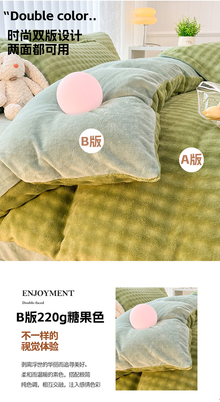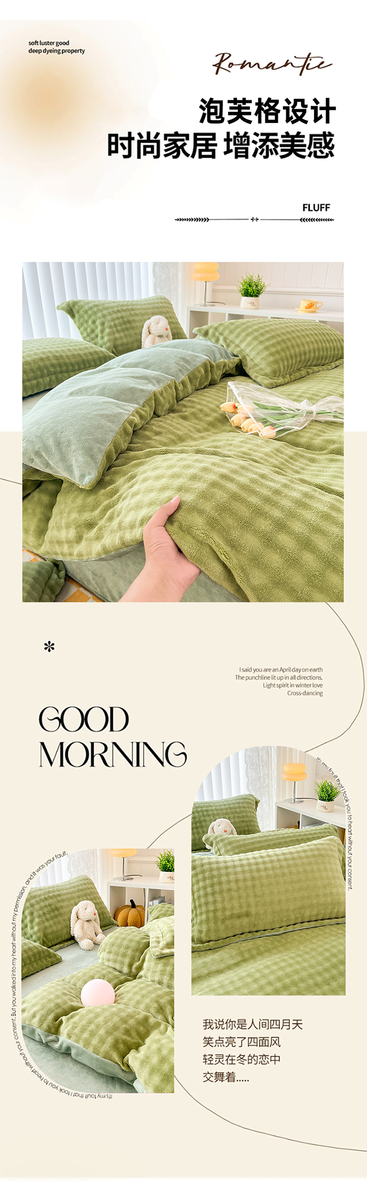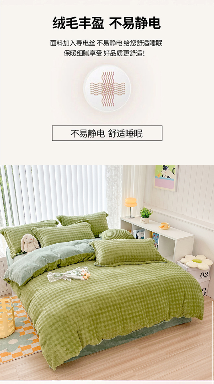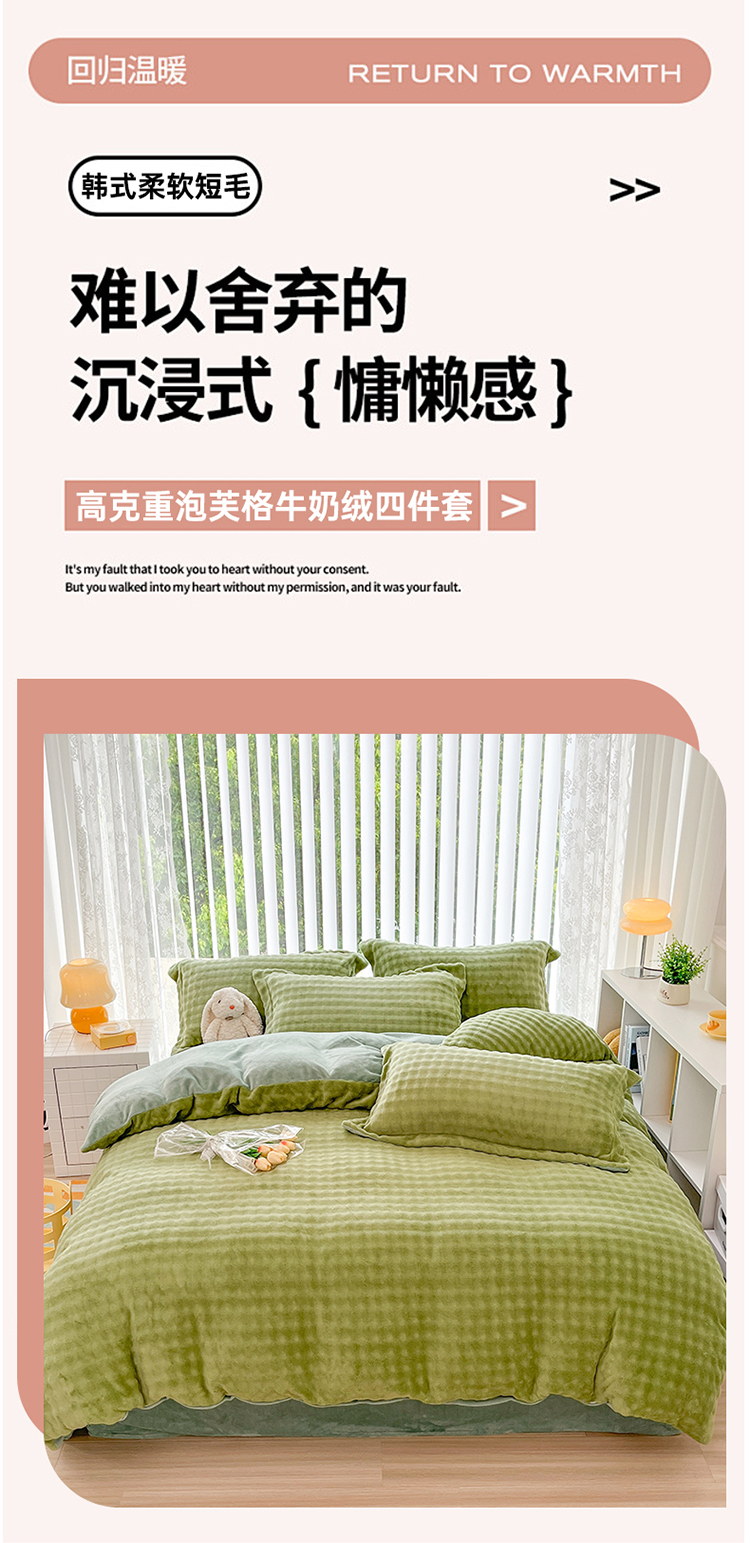 当前位置: 91家纺网 > 商品网购 > 床品套件 > 四件套 > 其它四件套 > (买家秀爆款不断货)A类母婴级高克重纯色獭兔绒四件套剪花牛奶绒四件套牛奶绒四件套纯色韩式兔毛绒四件套 韩式兔绒-苹果绿