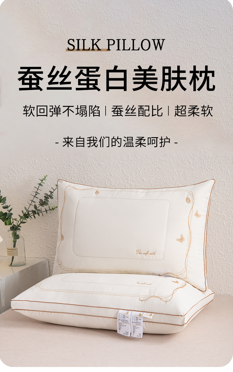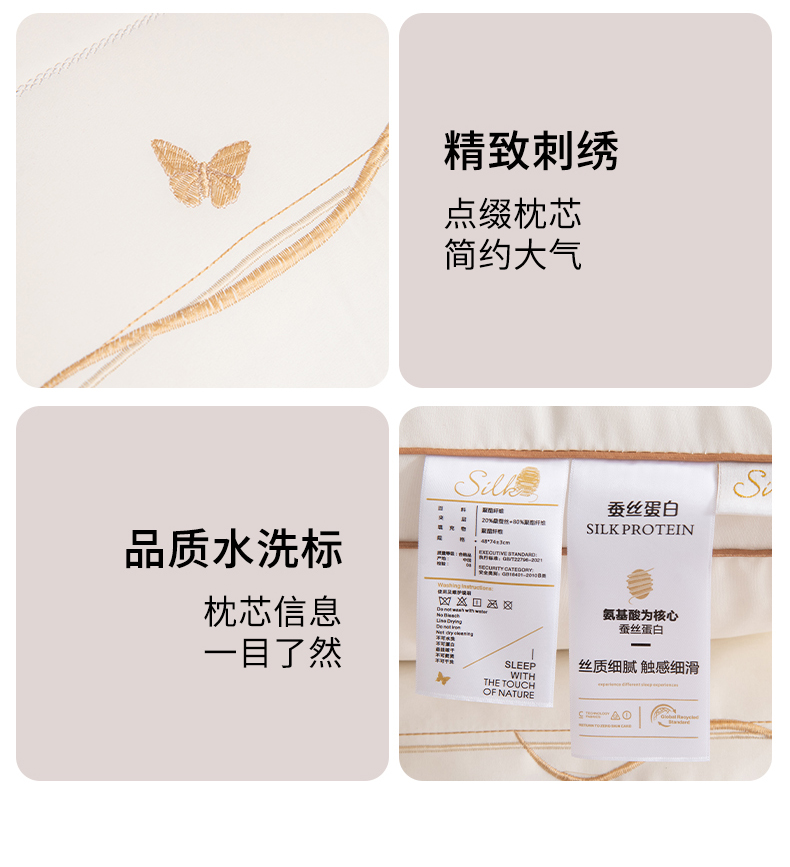 商品名称:(总)织布人 2025新款枕芯蝴蝶绗绣天然蚕丝枕头高端轻奢家用护颈枕芯