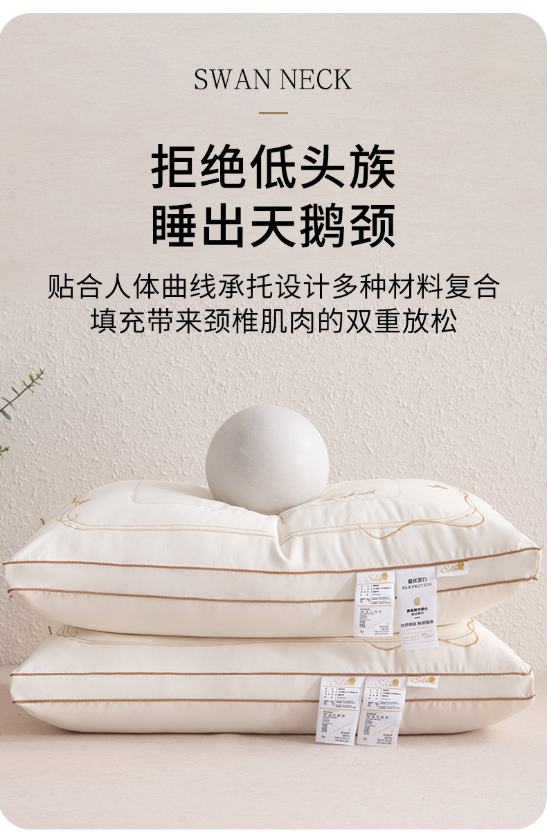 (总)织布人 2025新款枕芯蝴蝶绗绣天然蚕丝枕头高端轻奢家用护颈枕芯