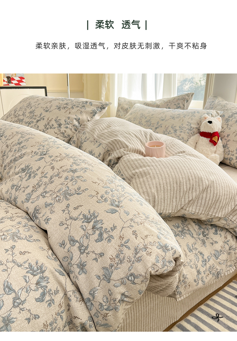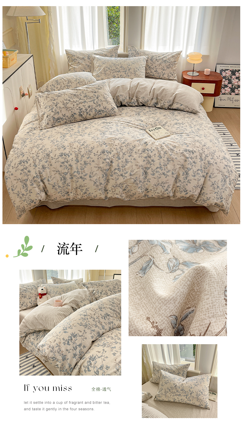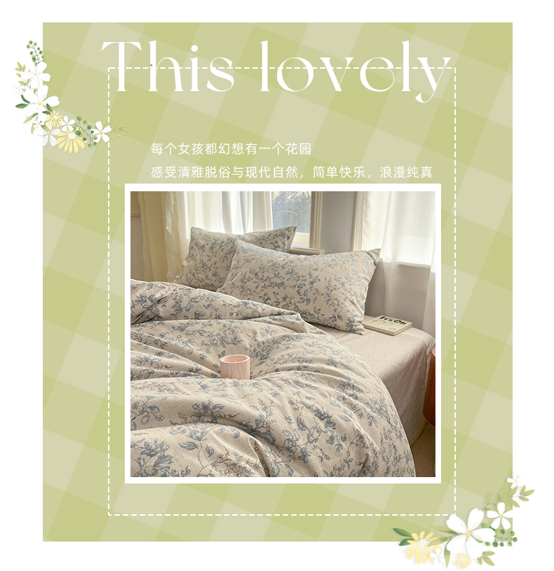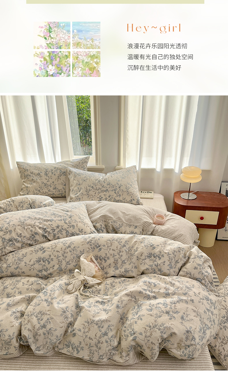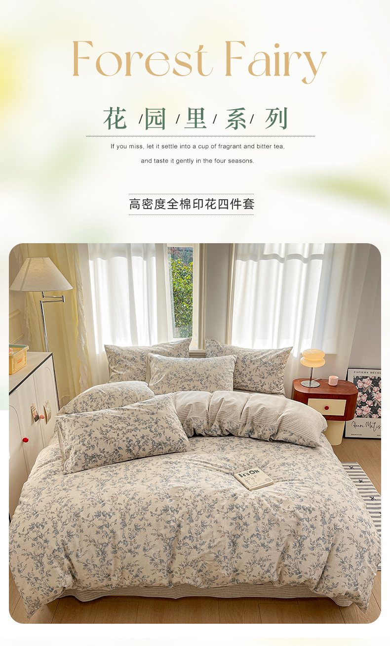 (总)捌月 2025新款13372全棉四件套花园里系列小清新全棉四件套热卖新品,艾美,蓝风铃,蓝汐,流年,魅影,木兰,年华,浅浅,青花瓷,青木,轻颜,韶华,思绪,汐月
