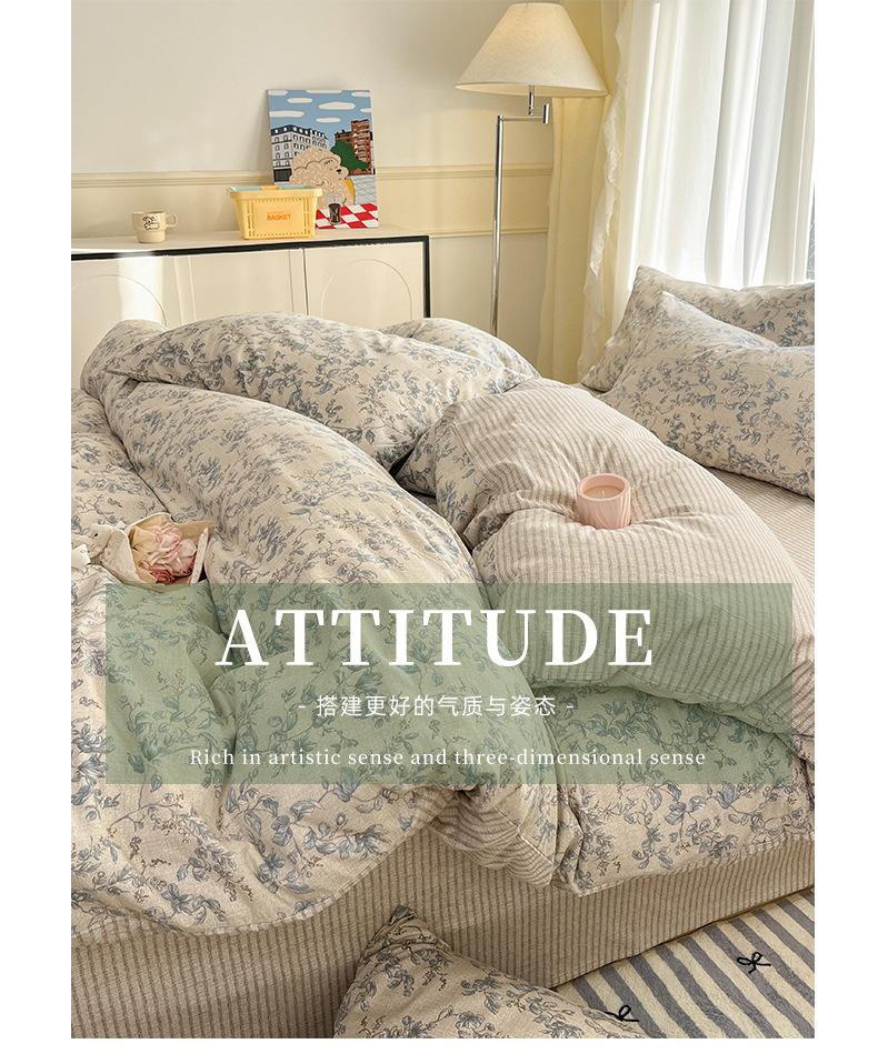 捌月 2025新款13372喷气全棉四件套-花园里系列 流年