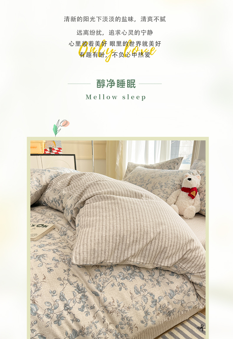 (总)捌月 2026新款奶油风全棉印花四件套,布丁,好朋友,花间小兔,花屿,露丝,蘑菇屋,奶芙,奶酪小羊,甜蜜,汐薇,小朵朵,幸运狗