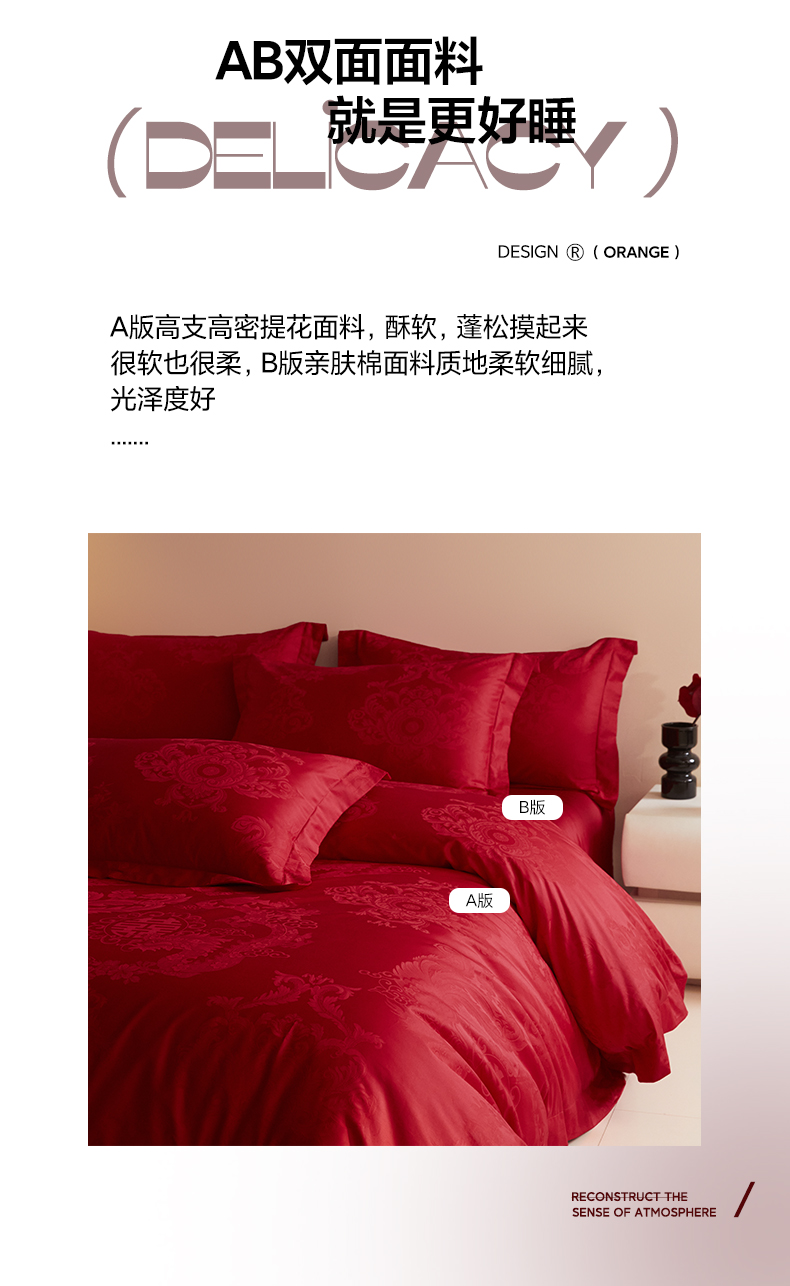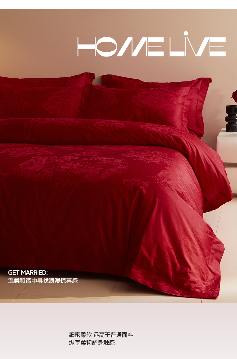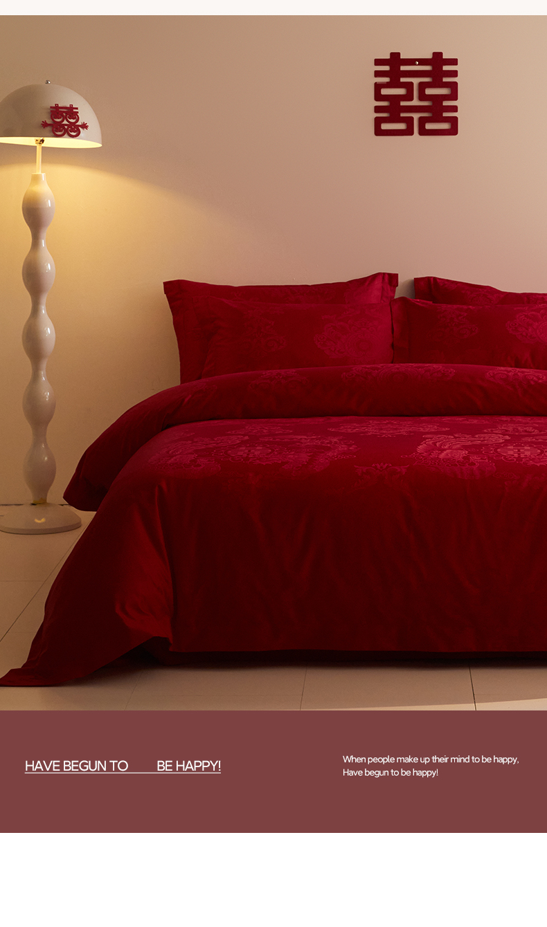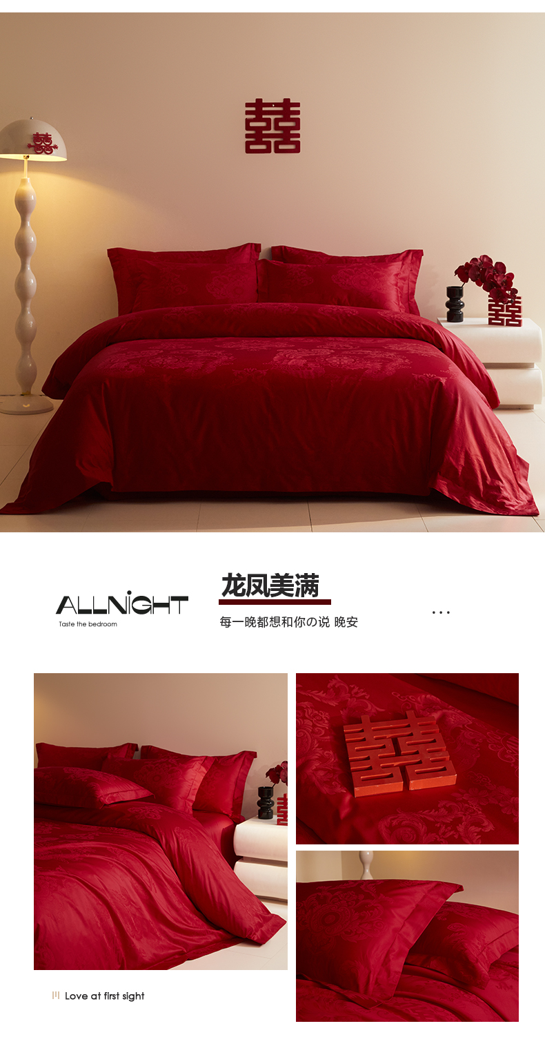(总)欧乐蒂 2025新款高支高密提花婚庆四件套,龙凤美满,玫瑰情缘,双囍-红,双囍-金,叶叶情深
