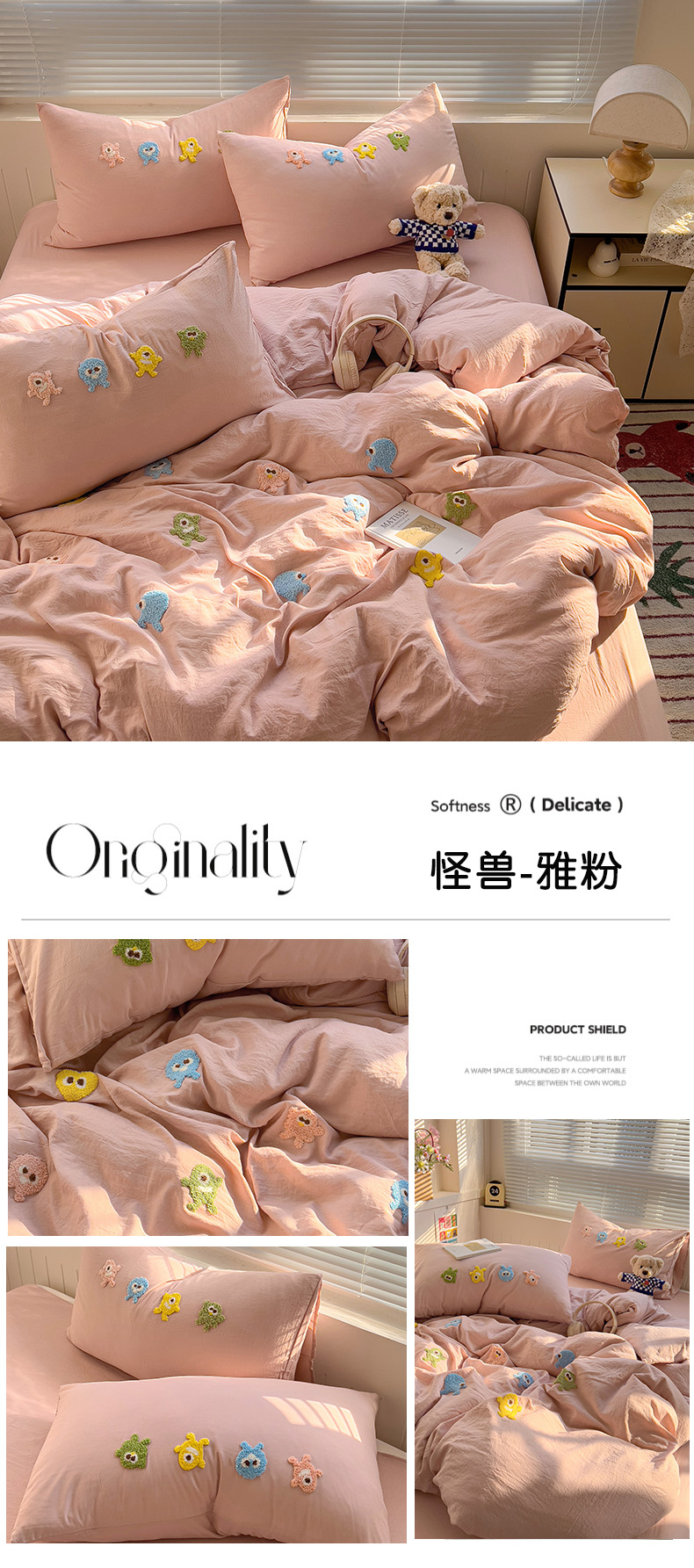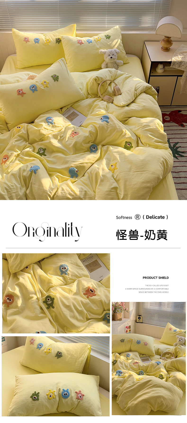 (总)悦织湾家纺 2025春秋新款超柔水洗棉毛巾绣单被套四件套-怪兽