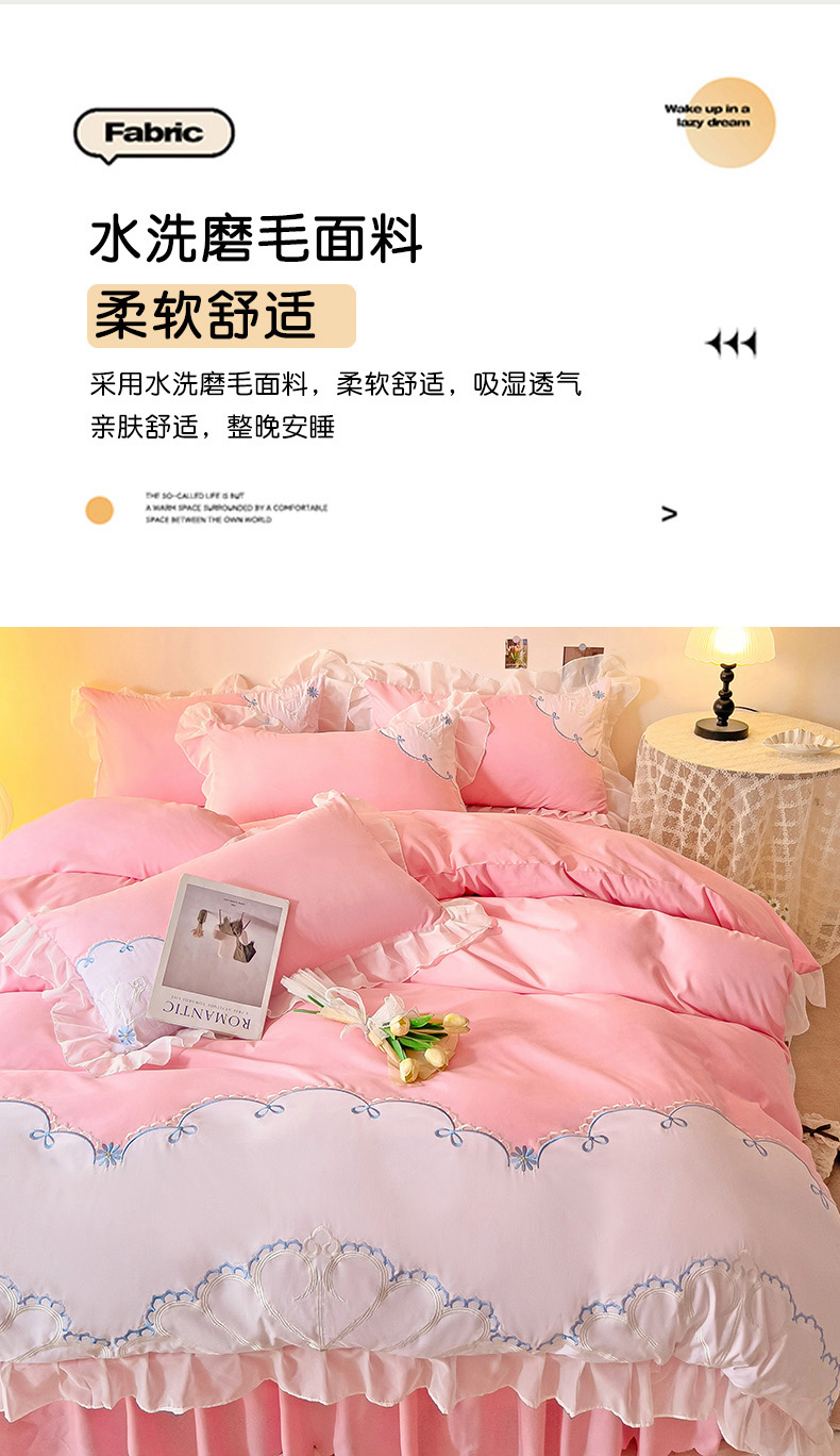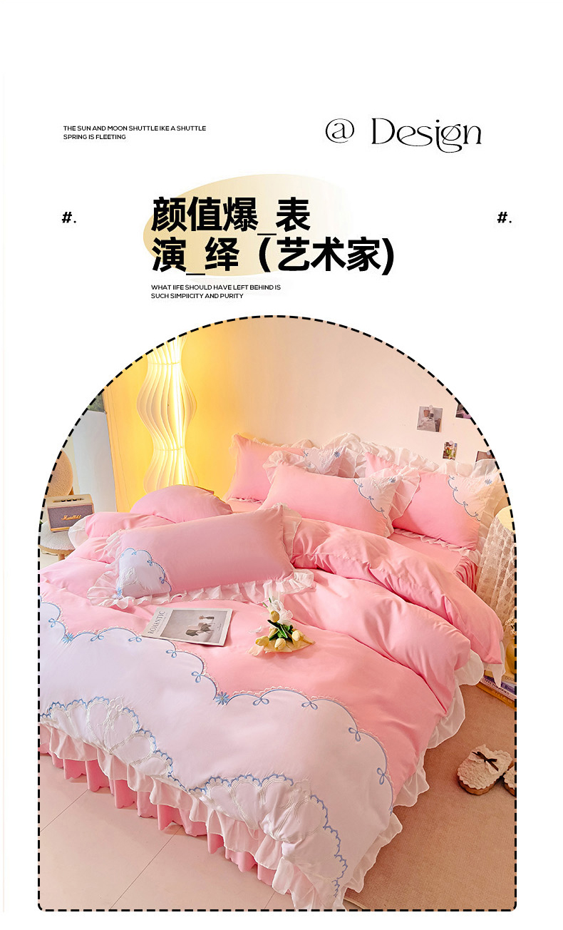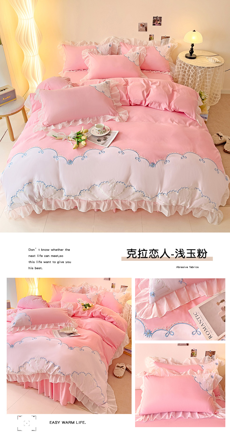 当前位置: 91家纺网 > 商品网购 > 床品套件 > 四件套 > 水洗棉四件套 > 慕语家纺 2025新款韩版高支高密水洗磨毛棉贴布绣四件套-克拉恋人 克拉恋人-浅玉粉